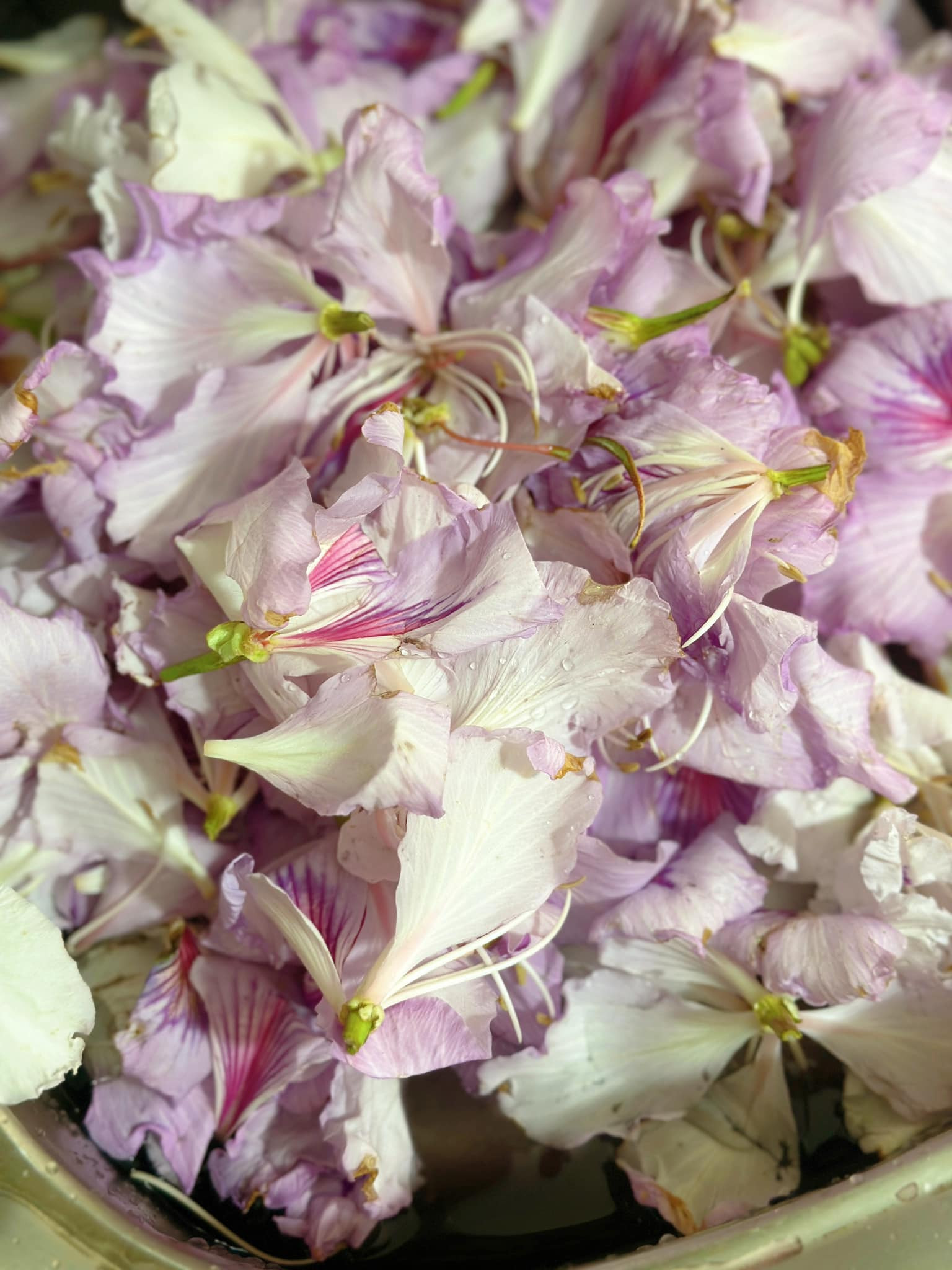 “Hoa ban hái về thì nhặt bỏ cuống già, giữ lại cánh và nhụy hoa rồi đem rửa sạch, trụng qua nước sôi, sau đó vớt ra để ráo.