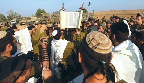 Binh sĩ Israel cầu nguyện tại một phòng tuyến ở phía nam Gaza