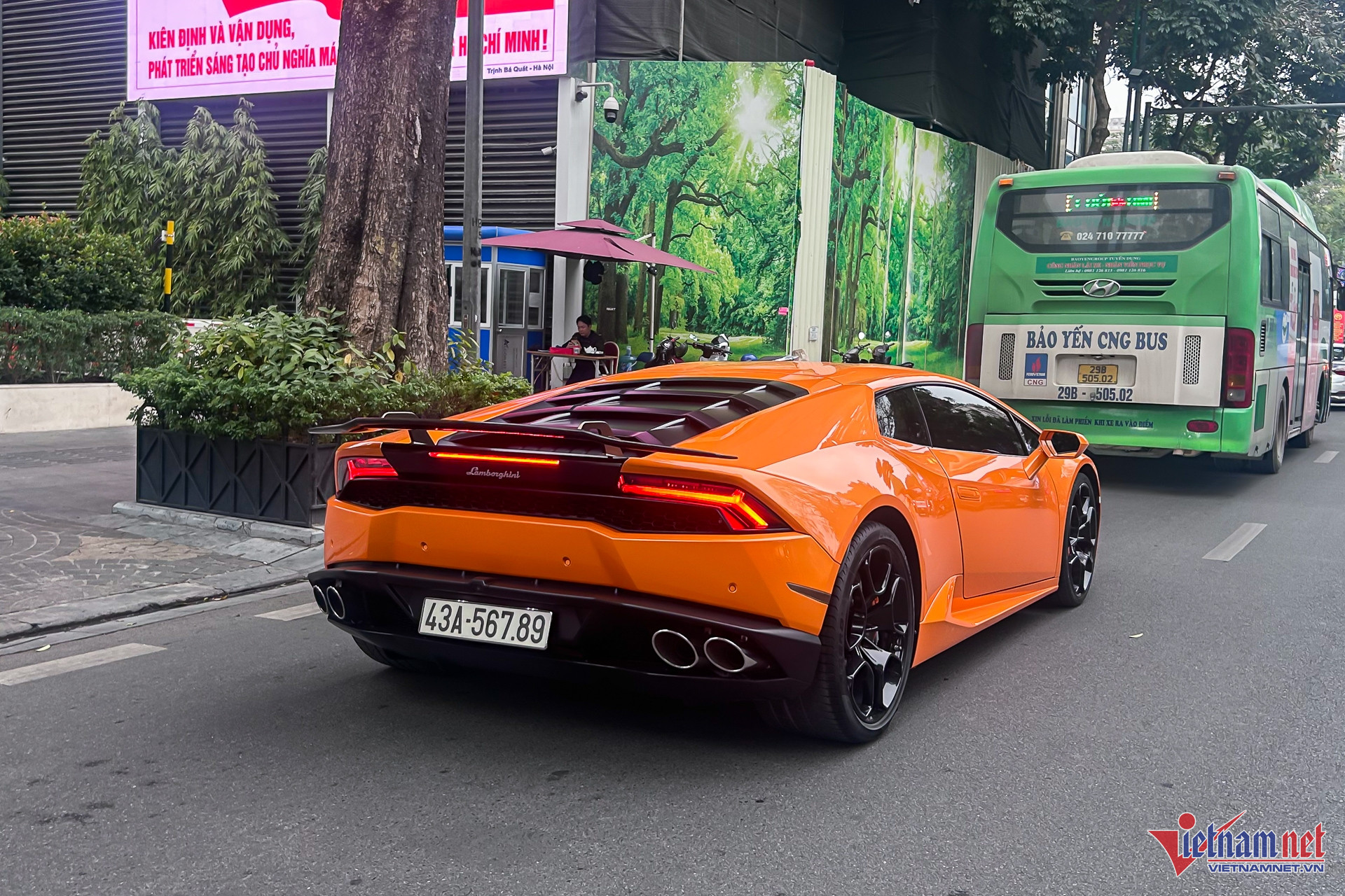 Mới đây, một đại gia Hà Nội đã mua lại chiếc Lamborghini Huracan từ tay đại gia Đà Nẵng. Theo tìm hiểu của VietNamNet, siêu xe này hiện có giá bán hơn 9 tỷ trên thị trường xe cũ. Xe đã lăn bánh khoảng 14.000 km, thuộc đời 2015 và mang biển số 43A-567.89.