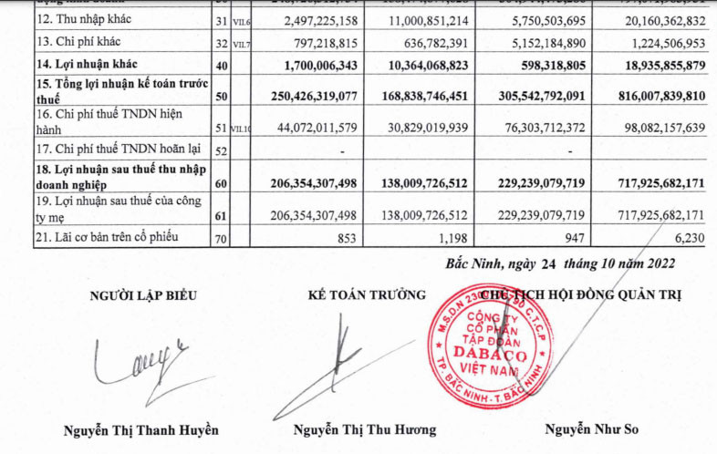 Tập đoàn Dabaco Việt Nam (DBC) của ông Nguyễn Như So vừa công bố báo cáo tài chính hợp nhất quý III/2022 với lợi nhuận sau thuế tăng khá mạnh từ 138 tỷ đồng cùng kỳ lên hơn 206 tỷ đồng.