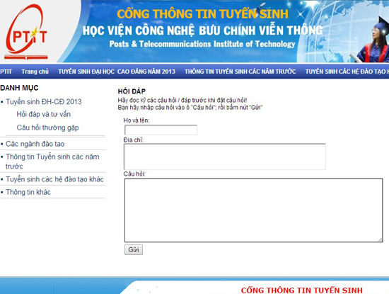 Các thí sinh có thể tìm hiểu thông tin chi tiết về công tác tuyển sinh và đào tạo của Học viện trên trang thông tin điện tử của trường tại địa chỉ: www.ptit.edu.vn. Đặc biệt, trong thời gian từ nay đến ngày 20/4/2014, Học viện Công nghệ Bưu chính Viễn thông triển khai chương trình tư vấn trực tuyến tuyển sinh 2014 tại Cổng thông tin tuyển sinh điện tử của trường. Thí sinh gửi câu hỏi đến Hội đồng Tuyển sinh Học viện thông qua trang tư vấn tuyển sinh trên Cổng thông tin tuyển sinh của Học viện tại địa chỉ: ptit.edu.vn/tuyensinh, phần trả lời sẽ được cập nhật liên tục.