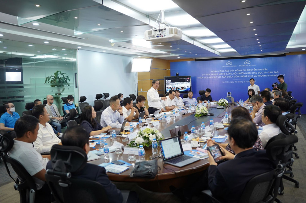 Chia sẻ mối quan tâm đến mô hình đại học số trong thời gian tới, Bộ trưởng đặt vấn đề, mong muốn trường Đại học CMC có thể trở thành hình mẫu cho mô hình đại học này; đồng thời tham gia rộng lớn hơn vào hệ thống chuyển đổi số của ngành và tham gia để gia tăng các chỉ số nghiên cứu khoa học trong hệ thống các đại học, trường đại học… Trong các giá trị cốt lõi, nhà trường tuyên bố rõ, nhấn mạnh đến tinh thần dân tộc, giá trị dân tộc…