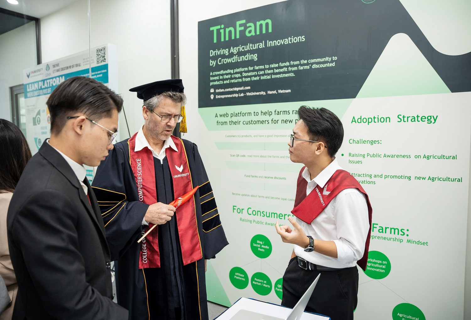 Sinh viên VinUni cũng có thể “khởi nghiệp ở mọi lĩnh vực” khi được nhà trường tập trung hỗ trợ các thử nghiệm ở mọi chuyên ngành. Trường đặc biệt khuyến khích sự kết hợp đa ngành, ví dụ như ý tưởng chăm sóc sức khỏe sử dụng dữ liệu lớn hay quản lý sản phẩm nông nghiệp trên nền tảng Block chain…