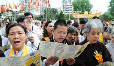 Tại Hà Nội, Đại lễ đã được tổ chức sáng nay, 17/5, tức ngày rằm tháng tư âm lịch, tại Cung văn hóa Hữu nghị.