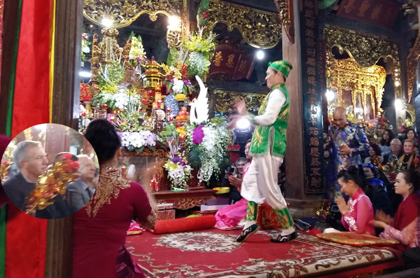 Trong suốt buổi hầu đồng, Đại sứ Mỹ Ted Osius tỏ ra rất thích thú và thường xuyên nhún nhảy theo âm nhạc. Chia sẻ với Vietnamnet, ông Ted Osius nói đây là lần đầu tiên ông xem hầu đồng và cảm thấy vô cùng cuốn hút, đặc biệt là phần âm nhạc. "Buổi lễ rất hấp dẫn và lôi cuốn. Tôi cảm thấy rất thú vị khi mỗi giá đồng lại là một câu chuyện khác nhau". Đại sứ Mỹ cũng mong muốn sẽ có nhiều dịp xem hầu đồng tại nhiều nơi khác nữa ở Việt Nam.
