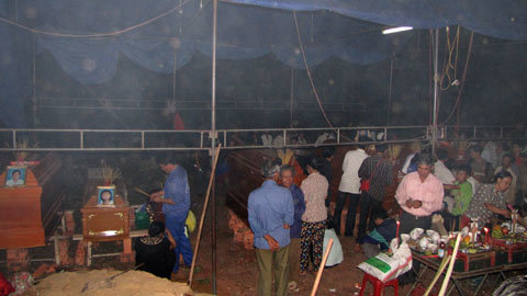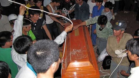 Đúng 23h30 phút, chiếc quan tài mà bên trong là thi thể chị Trần Thị Tương được