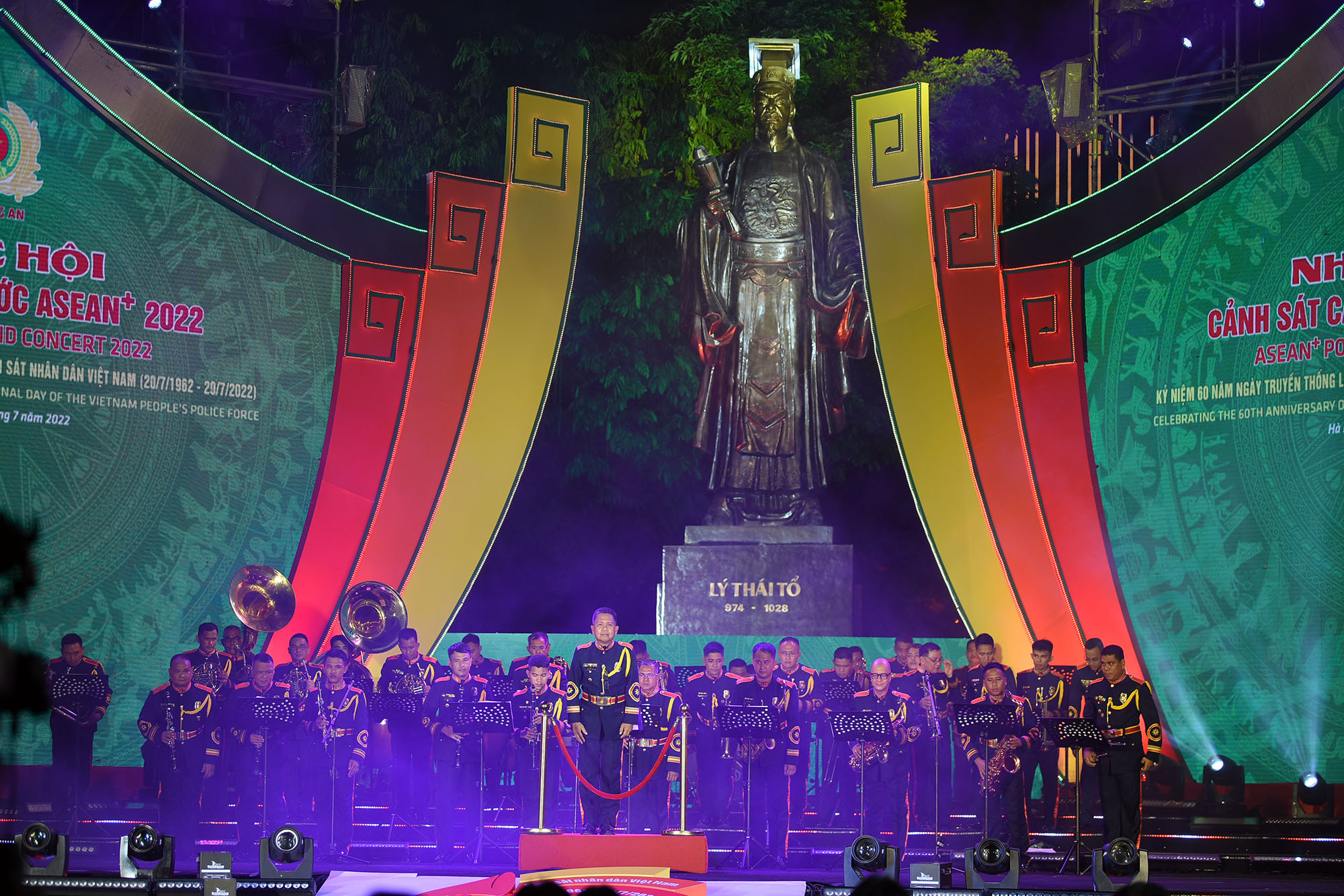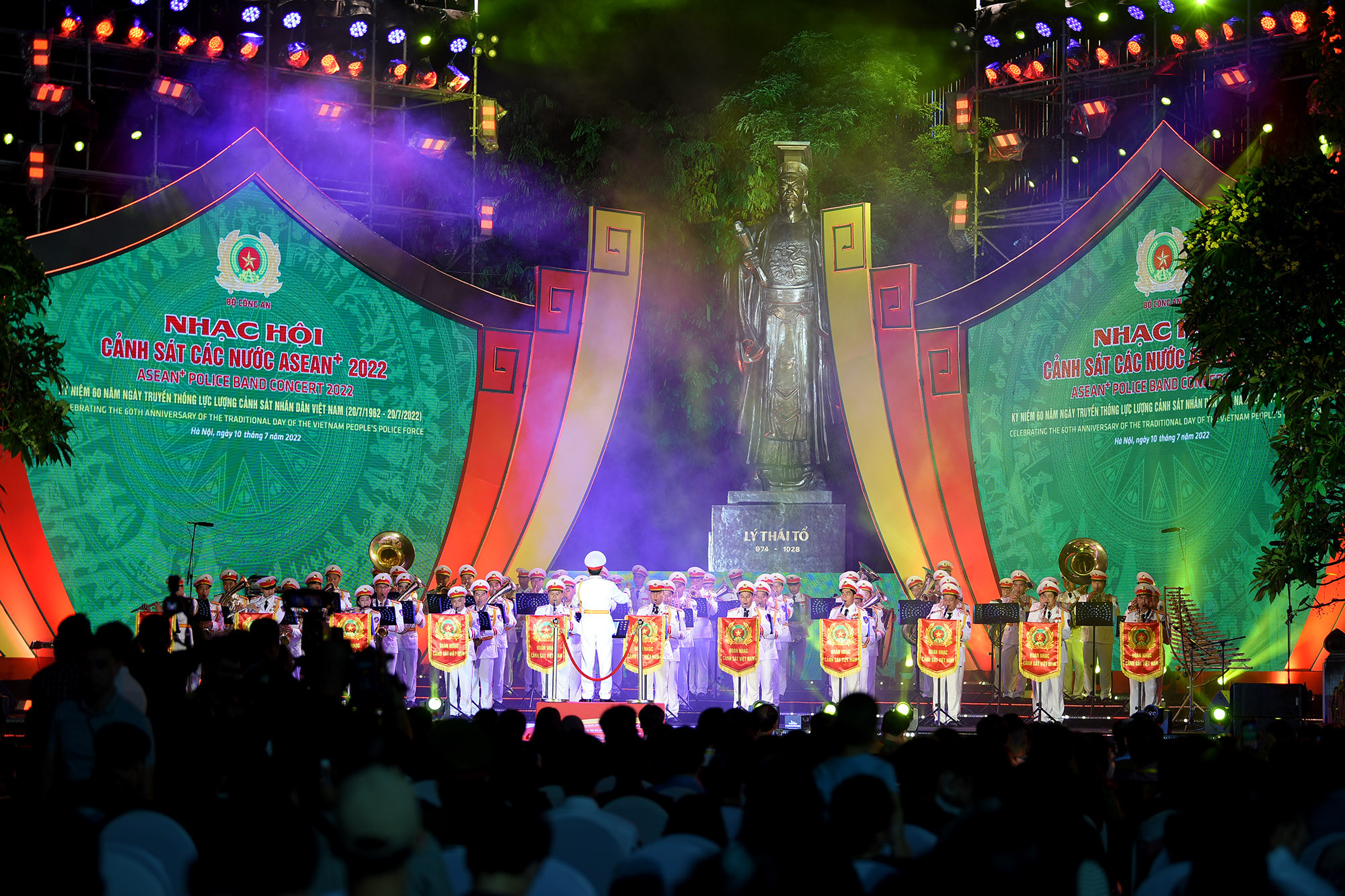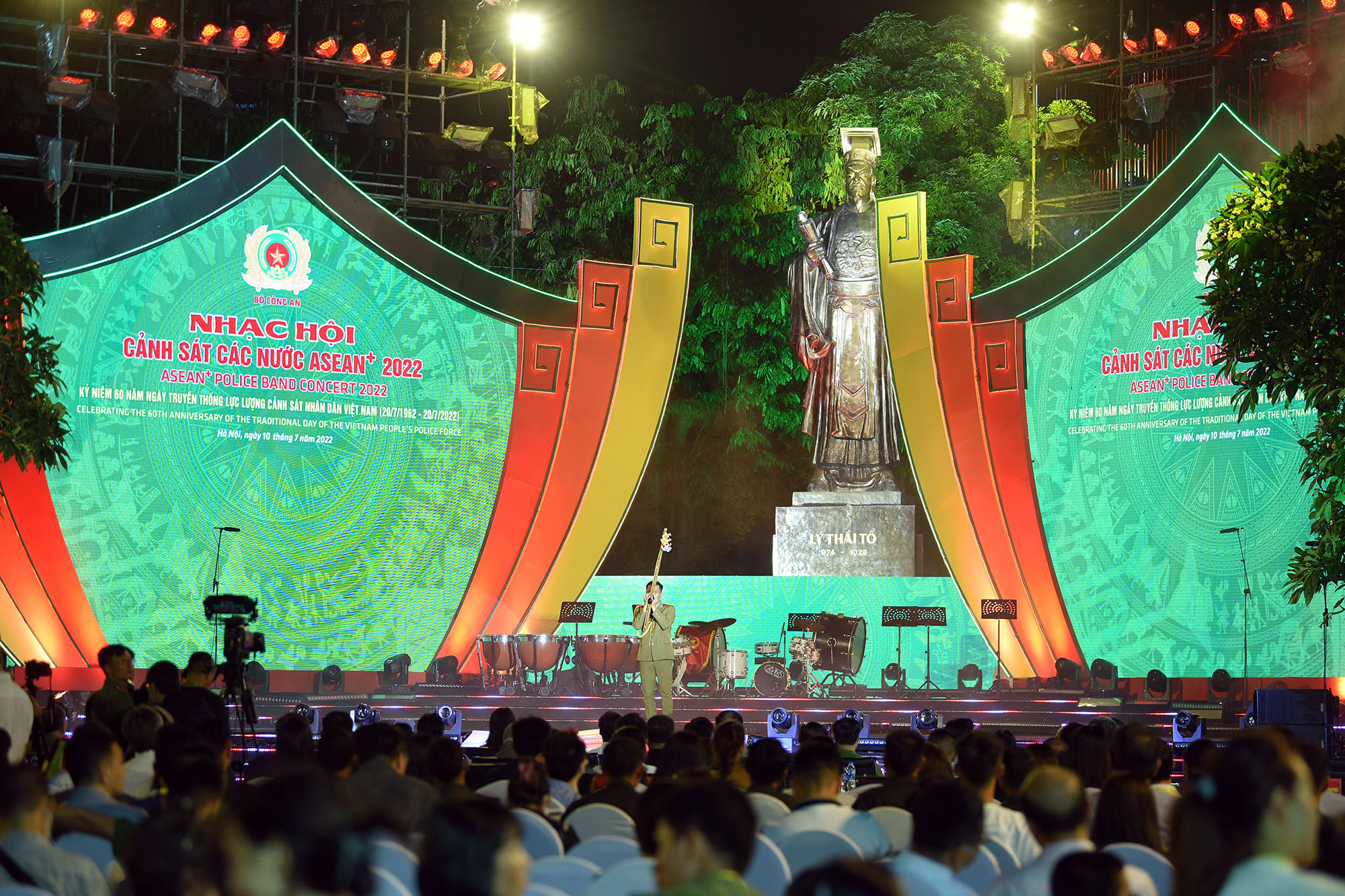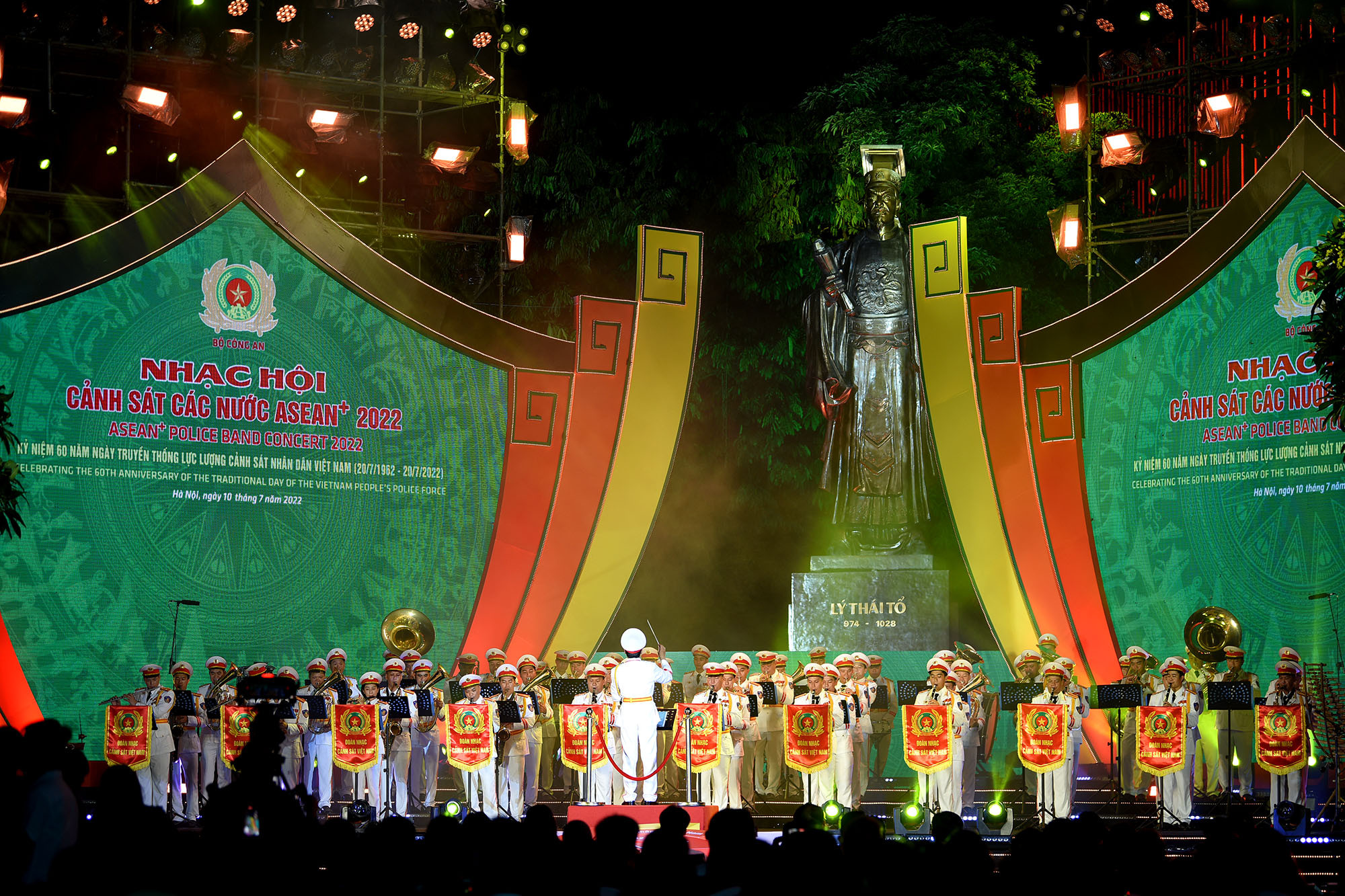 Tối 10/7, chương trình hòa nhạc của Nhạc hội Cảnh sát các nước ASEAN+ 2022 đã diễn ra tại khu vực trước tượng đài vua Lý Thái Tổ, Hà Nội.