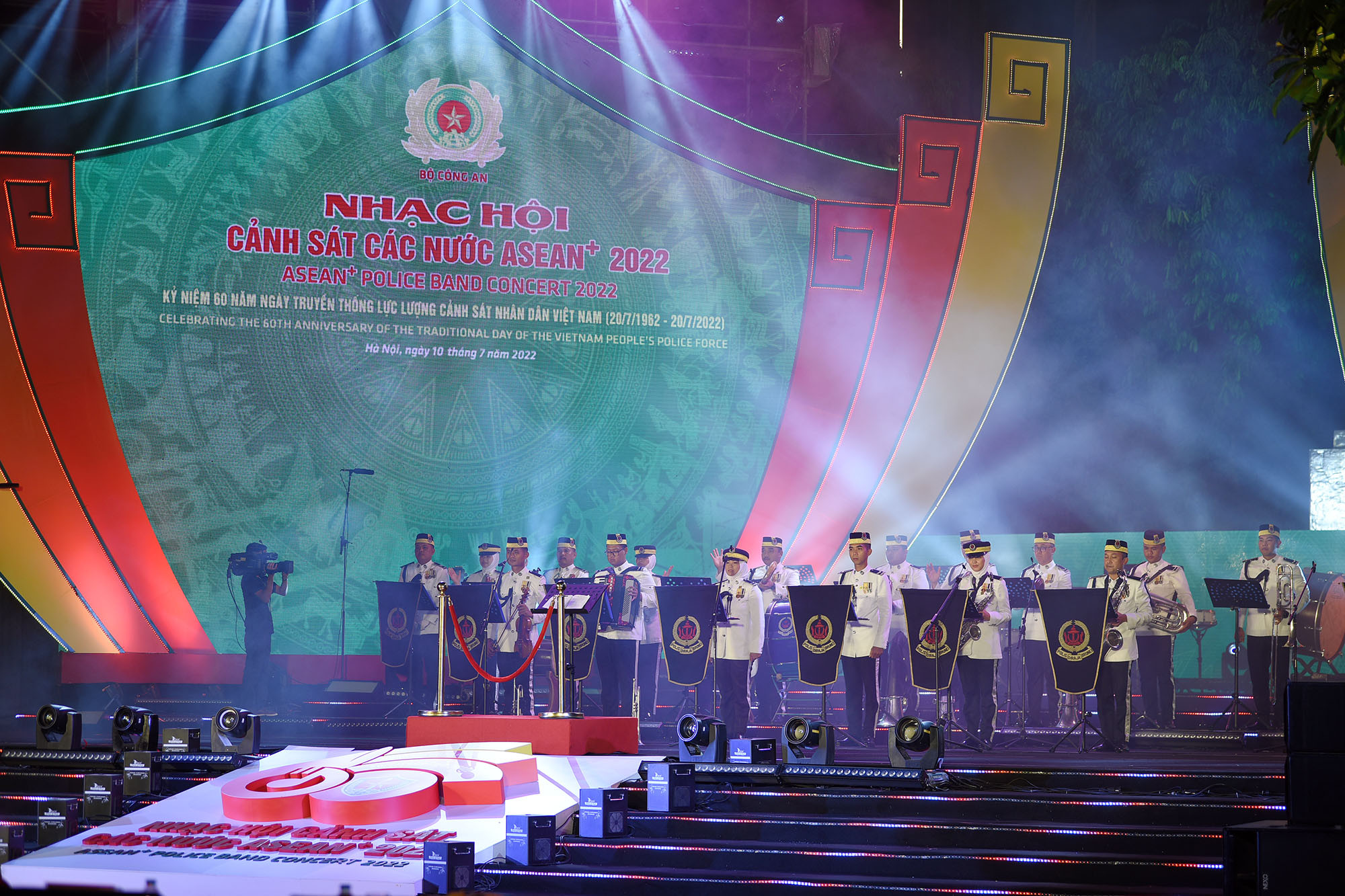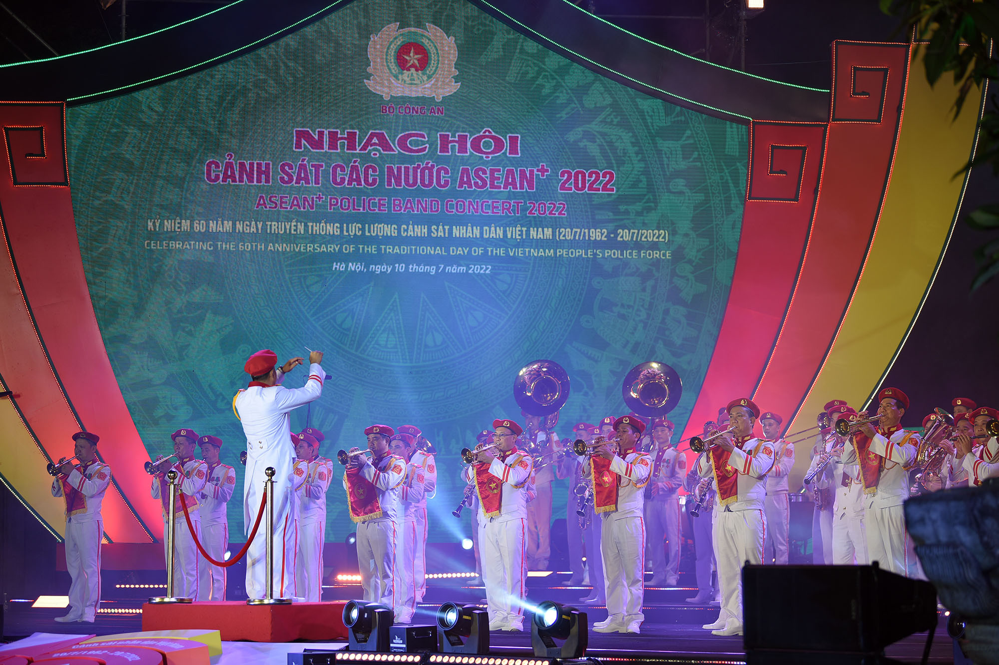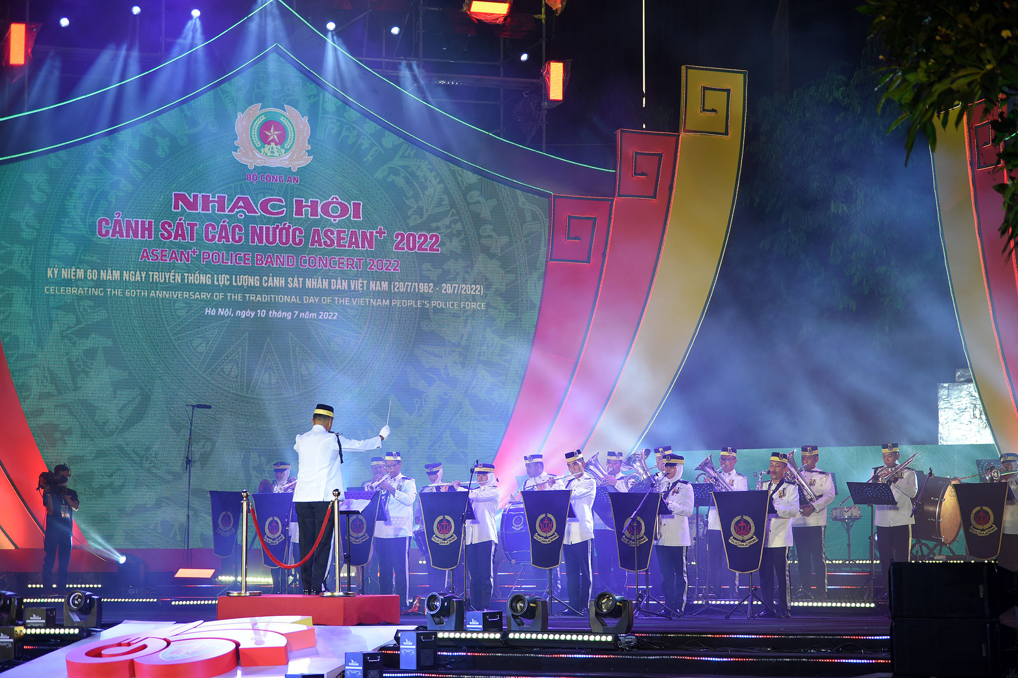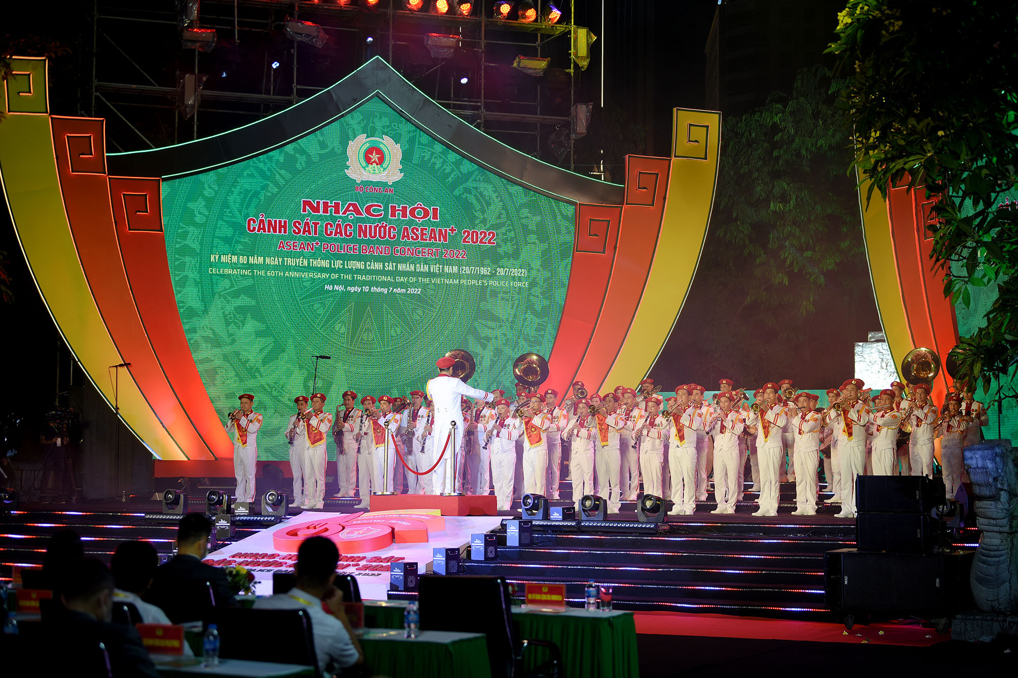 Tối 10/7, chương trình hòa nhạc của Nhạc hội Cảnh sát các nước ASEAN+ 2022 đã diễn ra tại khu vực trước tượng đài vua Lý Thái Tổ, Hà Nội.