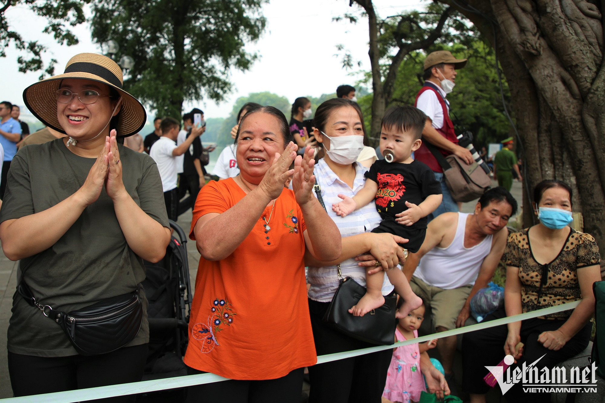 Bà Nguyễn Hải Hà (Đông La, Hoài Đức) cho biết, bà đọc báo và biết được chương trình Nhạc hội, vì thế, cả gia đình đã đi từ 6h30 để đến hồ Gươm chờ xem các đoàn biểu diễn.