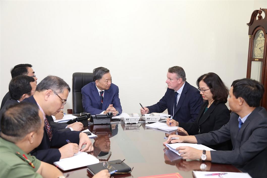 Bộ trưởng Tô Lâm đề nghị Bộ Nội vụ Anh tạo điều kiện cho việc bảo hộ công dân theo đúng quy trình, thủ tục pháp luật trong trường hợp có nạn nhân là người Việt.