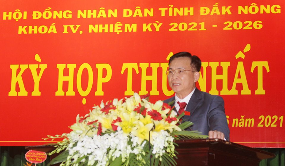 Tân Chủ tịch UBND tỉnh Đắk Nông Hồ Văn Mười phát biểu nhận nhiệm vụ. Ảnh: Báo Đắk Nông |