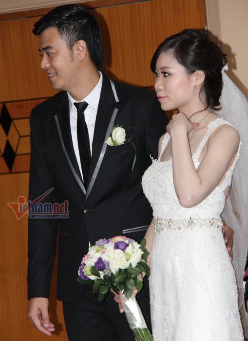 Trước sự săn đón của báo chí, Tuấn Tú ban đầu hơi gượng gạo. Tuy nhiên, chàng trai quen thuộc của chương trình "Chiếc nón kỳ diệu" đã sớm lấy lại bình tĩnh, tự tin và hồ hởi tươi cười bên cô dâu Thanh Huyền.