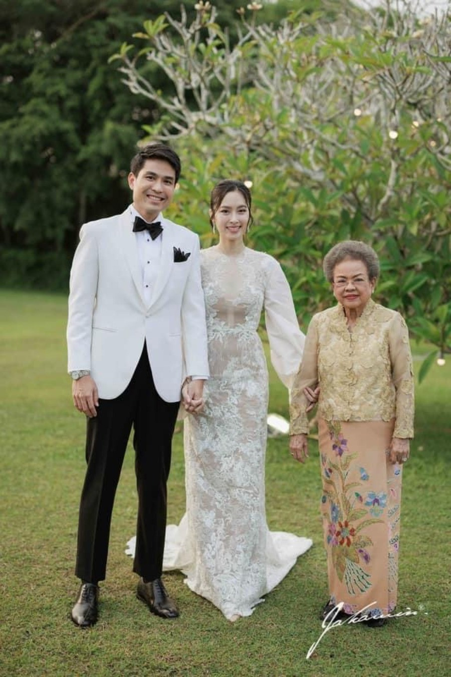 Tờ Harper's Bazaar Thái Lan đưa tin, sau nghi thức truyền thống, hoa hậu chuyển giới Nong Poy và chồng doanh nhân Oak Phakwa Hongyok tổ chức tiệc theo phong cách hiện đại. Hôn lễ diễn ra tại Ban Ar Jor - biệt thự cổ gia đình chú rể sở hữu ở Phuket. Gia đình hai bên cùng bạn bè, đồng nghiệp thân thiết chúc mừng cô dâu, chú rể."Hoa hậu chuyển giới đẹp nhất Thái Lan" lựa chọn phong cách trang điểm nhẹ nhàng kết hợp chiếc váy cưới pha ren thanh lịch, sang trọng, tạo điểm nhấn ở phần ống tay cổ điển.