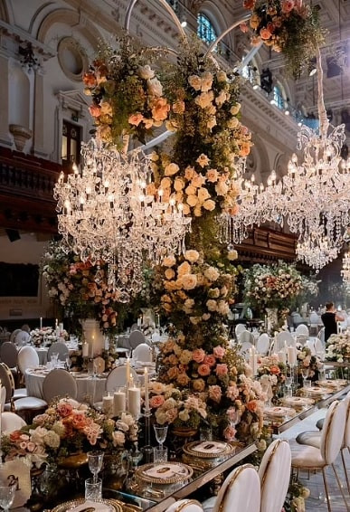 Theo những thông tin mới đăng tải, hội trường được trang trí bằng 15.000 bông hồng trắng và hồng phớt. Xen kẽ với những bông hoa là tán lá xanh trải rộng để tạo nên một khu vườn trong nhà tuyệt đẹp. Nhân viên đơn vị tổ chức phải mất tới 1.000 giờ làm việc để sắp xếp căn phòng.