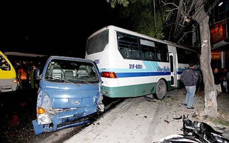 lại tiếp tục đâm vào xe ô tô tải 14M- 7506.