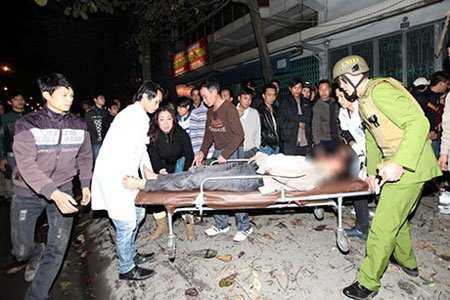 | Lực lượng chức năng khẩn trương sơ cứu, đưa nạn nhân đi cấp cứu tại bệnh viện. |