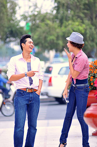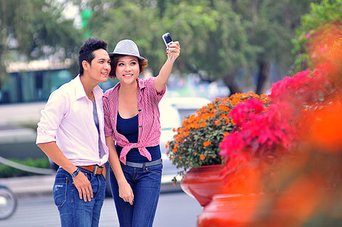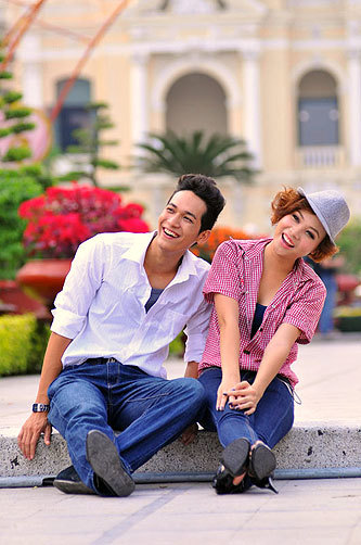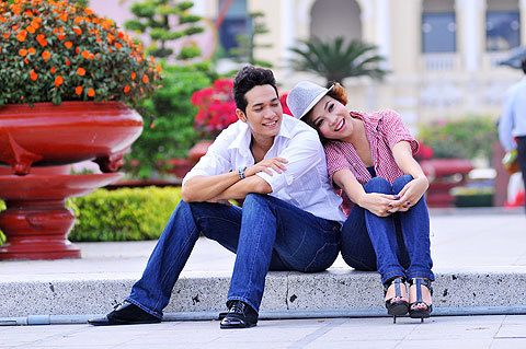 – Đôi trai tài gái sắc “ríu rít” bên nhau trong nắng xuân Sài Gòn.