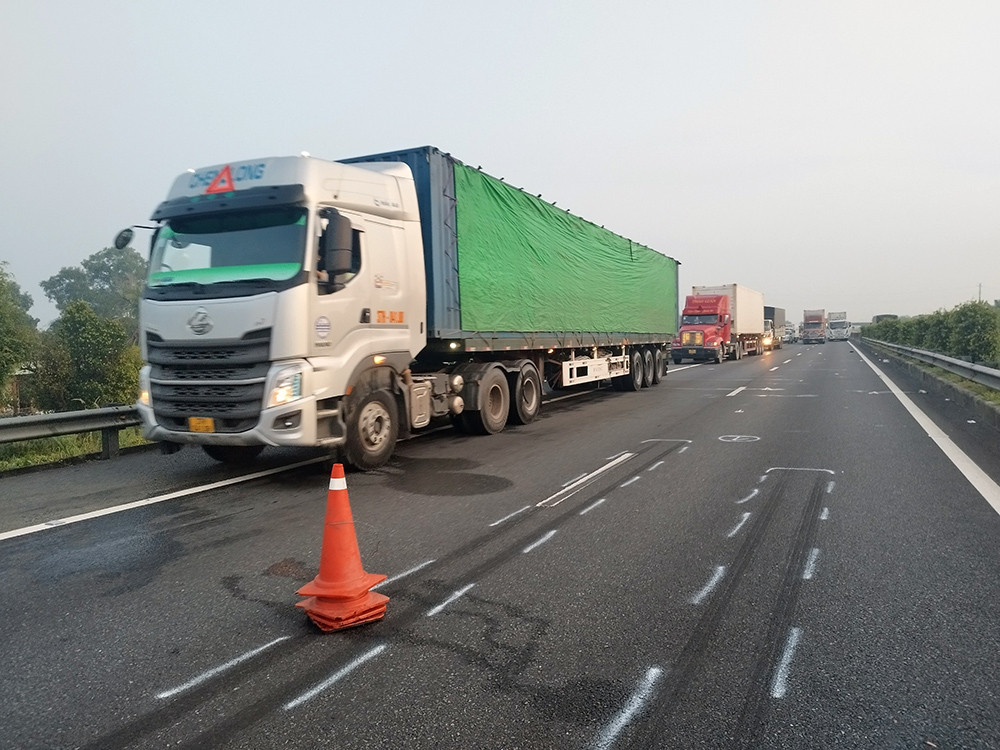 Cả hai phương tiện bị nạn chắn ngang đường, gây cản trở giao thông. Tuyến đường cao tốc theo hướng miền Tây ùn tắc khoảng 6km.