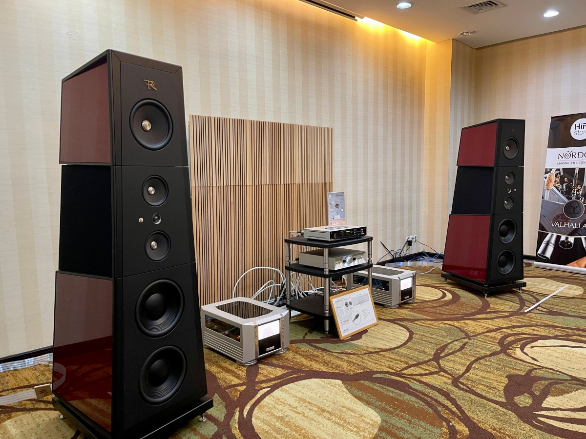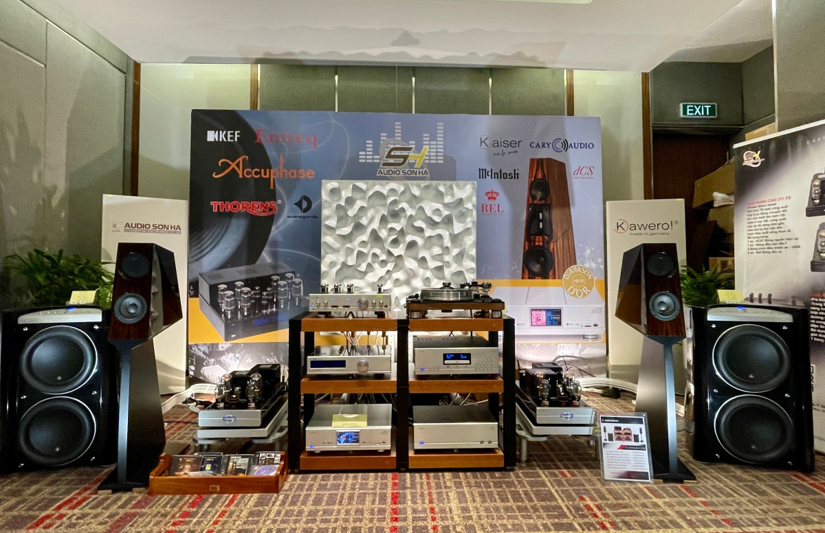Cặp loa Focal Grande Utopia EM Evo vẫn là điểm nhấn tại triển lãm lần này. Để cho người dùng thưởng thức, Hoàng Hải đã tiến hành ghép nối với các thiết bị tạo ra dàn âm thanh có giá lên tới 37 tỷ đồng, đắt nhất từ trước đến nay. Đại diện nhà phân phối cho biết, hiện có khoảng 10 người trong nước đang sở hữu dàn âm thanh này.Tiếp tục là Hoàng Hải với dàn âm thanh đi kèm cặp loa Tidal Speaker Akira giá 7,38 tỷ đồng. Đây là bộ loa thuộc vào hạng sang chảnh khi bao gồm loa midrange kim cương với độ lớn lên tới 5 inch, mỗi bên loa này với 27 carat kim cương nguyên nhất. Riêng 4 củ loa midrange đã có giá 625 triệu đồng. Giá đầy đủ của các thiết bị tạo nên dàn âm thanh này lên tới 31 tỷ đồng.Cáp nguồn để kết nối các dàn âm thanh của Hoàng Hải, giá mỗi mét cáp dao động từ 400 - 500 triệu đồng.Cặp loa RossoFiorentino đến từ Italy với giá 3,2 tỷ đồng. Dàn âm thanh này sau khi lắp ráp hoàn thiện có giá 8,8 tỷ đồng.Đi kèm với dàn âm thanh kèm cặp loa RossoFiorentino ở trên là hệ thống cáp đấu nối có giá tới 2,3 tỷ đồng.Burmester cũng đem đến triển lãm dàn âm thanh hơn 4,5 tỷ đồng.Dali đánh dấu việc mình tham gia vào phân khúc cao cấp với cặp loa Kore giá gần 2,5 tỷ đồng, đi kèm với nó là dàn âm li kết nối trị giá 732 triệu đồng. Dàn âm thanh phức tạp nhiều thiết bị này đến từ Sơn Hà, nếu tính đầy đủ phụ kiện đấu nối có giá lên tới 5 tỷ đồng, trong đó chú ý là cặp loa Kaiser Chiara CH3 có giá 780 triệu đồng.Đây là dàn âm thanh có giá hơn 1 tỷ đồng tại phòng trưng bày của Nghệ Thính, đáng chú ý cặp loa Sounder S6 này chỉ có giá 34 triệu đồng và tất cả đều được sản xuất tại Việt Nam với các linh kiện được nhập từ Đức.Bên cạnh những dàn âm thanh tiền tỉ, tại triển lãm cũng xuất hiện dàn âm thanh karaoke đến từ Việt Nam của Paramax, với cặp loa Euro 8 Series nhiều màu sắc và âm li kết nối tích hợp cả mixer karaoke và micro không dây. Hệ thống này có giá tầm 25 triệu đồng.