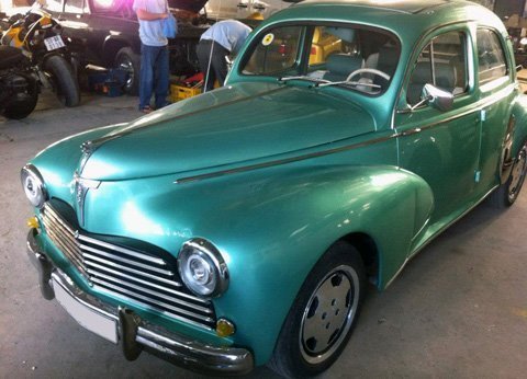 | Chiếc xế cổ Peugoet 203 được phục chế ở Sài Gòn. |