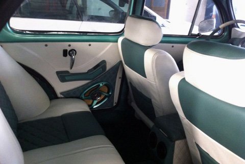 Nội thất làm mới phù hợp với màu sơn xe. Ngoài ra, để đáp ứng nhu cầu của chủ xe khi vi vu trên những cung đường dài, một hệ thống âm thanh mới được lắp đặt, bao gồm âm ly, 2 loa sub đặt phía sau, 6 loa được bố trí bên trong xe ở cả hai hàng ghế. Ngoài ra, một màn hình DVD mới cũng được gắn ở chính giữa bảng táp lô phía trước.