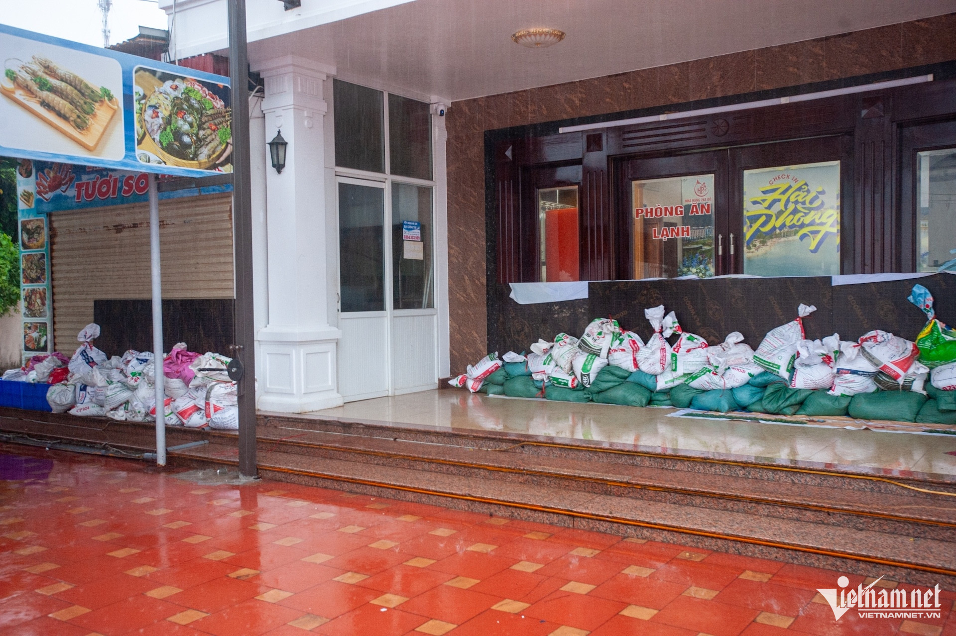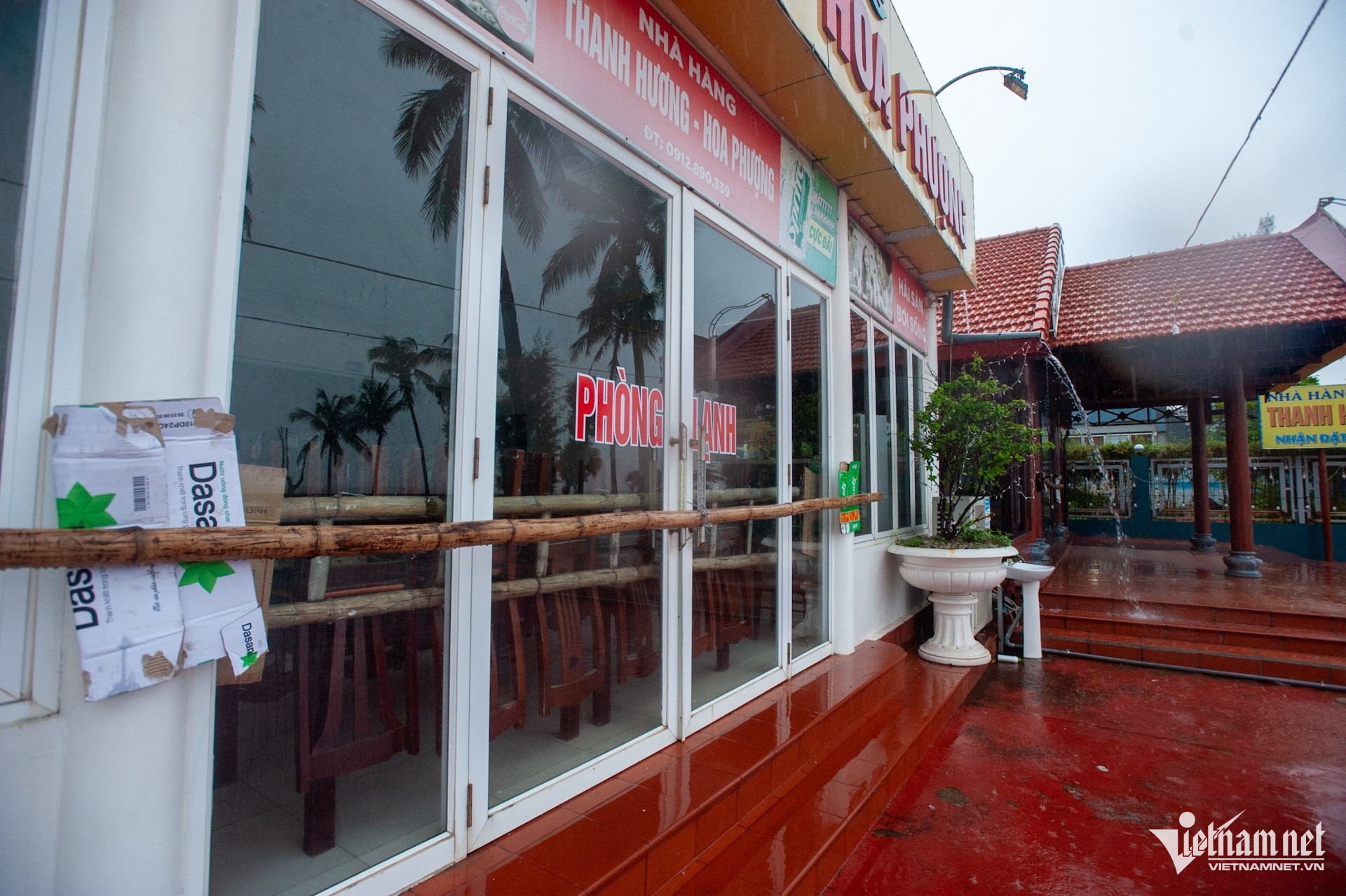 Nhiều chủ hàng quán kinh doanh ven biển đã chủ động đóng cửa từ sớm, tháo dỡ biển hiệu và che chắn nhà cửa để tránh thiệt hại trước diễn biến khó lường của bão.