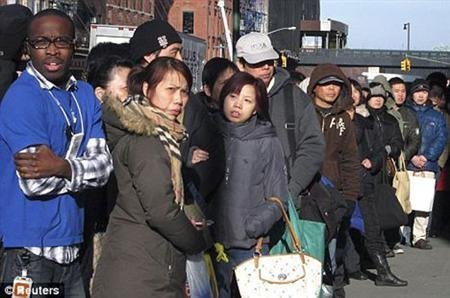 | Trong những dòng người xếp hàng chờ mua iPad, có rất nhiều gương mặt người Trung Quốc. |