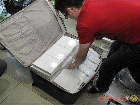| Những chiếc iPad buôn lậu được xếp gọn gàng vào những vali và được đưa trở lại Trung Quốc. |