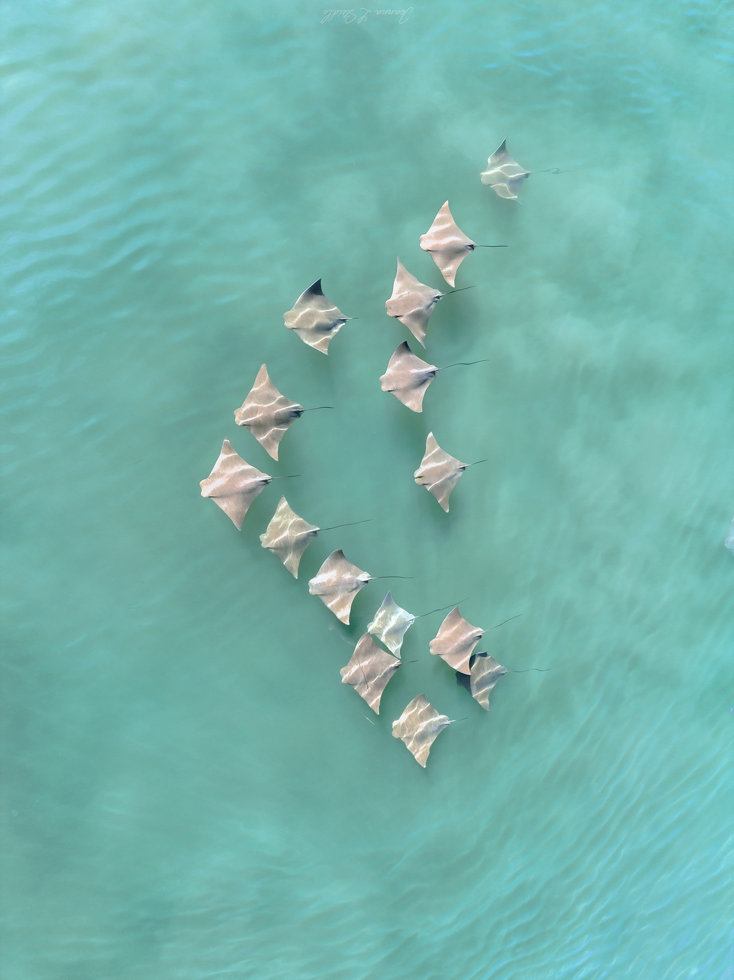 Đoạn video được Joanna L Steidle, một nữ nhiếp ảnh gia ghi lại bằng thiết bị không người lái cho thấy cảnh hàng nghìn con cá đuối biển gai độc bơi sát nhau ngay gần mặt nước đã tao nên một cảnh tượng tuyệt đẹp.