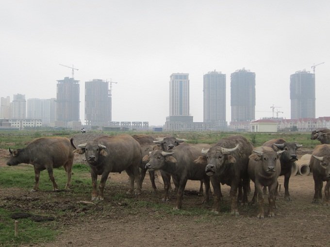 Nghề chăn thả trâu mới chỉ xuất hiện ở đất Dương Nội - Hà Nội được vài ba năm nay, trên đất dự án nghìn tỷ chưa được xây dựng. Nhờ BĐS đóng băng, nên trâu bò có thêm chỗ chăn thả, nên người nuôi bò nói vui là: xin cảm ơn BĐS.