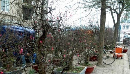 | Hàng chục hộ dân ở Nhật Tân xuống phố bán đào |