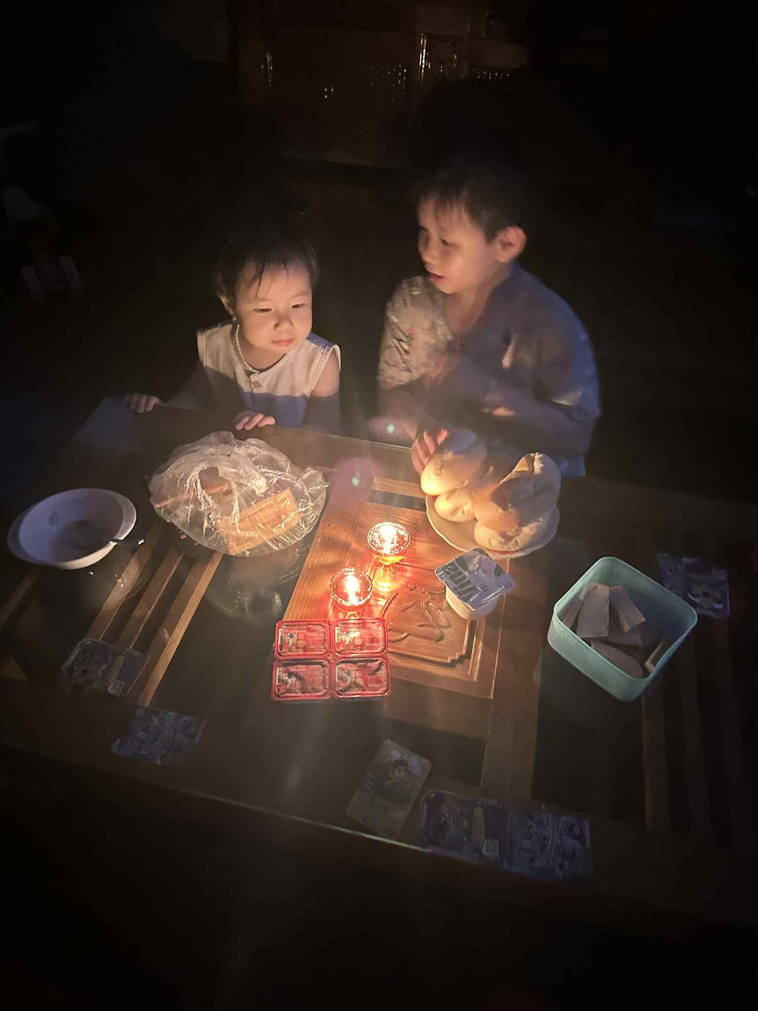 "Chồng tôi lội nước ra ngoài mua thêm bình ga, bếp ga mini phòng trường hợp mất điện kéo dài. Buổi tối, cả nhà ăn cơm bằng đèn pin điện thoại, sau đó kéo nhau đi ngủ sớm. Tôi trải chiếu dưới sàn, mở hết cửa ban công để đón gió.