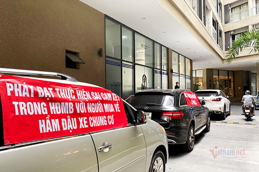 Nhưng thực tế, Công ty CP Xây dựng công trình 585 không bố trí hệ thống xếp xe tự động tại tầng hầm chung cư theo thiết kế và giấy phép xây dựng, dẫn đến thiếu diện tích chỗ đậu xe.