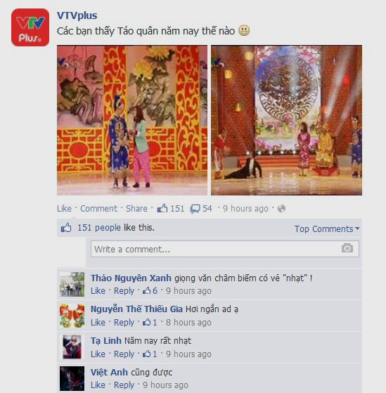 Đồng tình với quan điểm này có bạn Lee Min Hu: “Táo quân năm nay quá nhạt. Một năm rất nhiều vấn đề nổi cộm mà các nghệ sỹ không truyền tải được tới khán giả”. Hay như bạn nick Biết Về Nơi Đâu viết: “Chỉ thấy Ngọc Hoàng là mới mẻ, thật tình không hay bằng những năm trước mặc dù năm nay nhiều sự kiện đáng nói”.