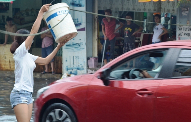 Chủ cửa hàng kinh doanh bánh kẹo cho biết, nước tràn vào quá nhanh đã làm nhiều thùng bánh bị hư hại. Tuyến đường được thi công...chống ngập nhưng vẫn ngập mênh mông; nước tấn công vào nhà khiến người dân khốn khổ
