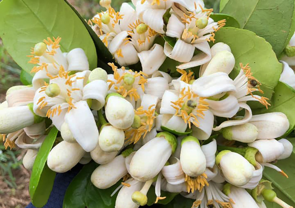 Trao đổi với PV. VietNamNet, anh Nguyễn Xuân Tuấn - chủ một vườn bưởi gần 5ha ở Lạc Thuỷ (Hoà Bình) - cho hay, giữa tháng Giêng cây bưởi bắt đầu trổ nụ, rồi hoa nở thành từng chùm. Bông hoa bưởi khi nở cánh trắng muốt, nhuỵ vàng toả hương thơm ngọt ngào.
