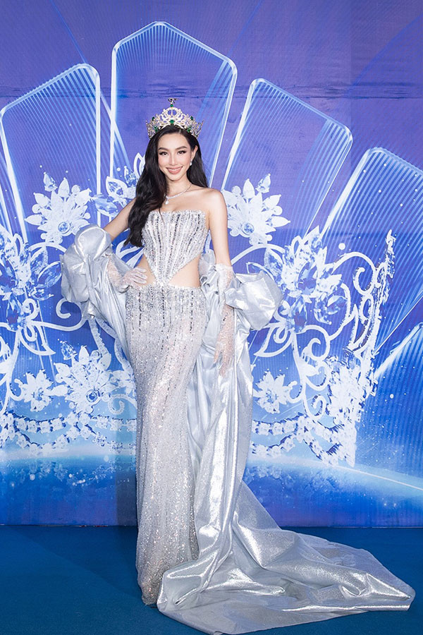 Đương kim Hoa hậu Thế giới 2021 - Karolina Bielawska khoe nét đẹp ngọt ngào như công chúa trong đầm dạ hội.Hoa hậu Đỗ Thị Hà khoe nét đẹp ngọt ngào trong váy dạ hội vàng, ngày càng thăng hạng nhan sắc sau khi thi Miss World 2021.Hoa hậu Lương Thuỳ Linh diện đầm cách điệu với phần thân đính kết tinh xảo và phần tà hồng tạo kiểu.Hoa hậu Trần Tiểu Vy diện váy ôm sát với điểm nhấn đính kết ở phần ngực.Đương kim Hoa hậu Hoà bình Quốc tế - Thuỳ Tiên kiêu kỳ trong đầm ánh bạc đính kết tỉ mỉ với phần tà bay bổng. Thời gian qua, cô chiếm cảm tình của khán giả Việt với chuyến thiện nguyện tại châu Phi và thực hiện nhiều chuyến công tác tại nhiều nước. Á hậu Tường San khoe vẻ đẹp đài các trong đầm trắng tinh tế cùng trang sức.Á hậu Phương Anh diện đầm đỏ kết hợp giữa đính kết và tà lụa. Cô sẽ thi Hoa hậu Quốc tế tại Nhật Bản dự kiến vào tháng 12 tới. Á hậu Kiều Loan khoe nhan sắc ngày càng mặn mà trong váy dạ hội được thiết kế tinh xảo, đeo găng tay quyền lực.Á hậu Ngọc Thảo gợi cảm với đầm cắt xẻ táo bạo.
