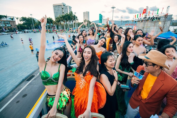 Trên 2 xe được trang hoàng rực rỡ, 38 thí sinh diễu hành trên các đường phố đã thu hút sự chú ý của du khách và người dân Quy Nhơn. Sự sôi động của các thí sinh giúp các tuyến đường ở thành phố biển thêm tưng bừng, rực rỡ và sôi động.