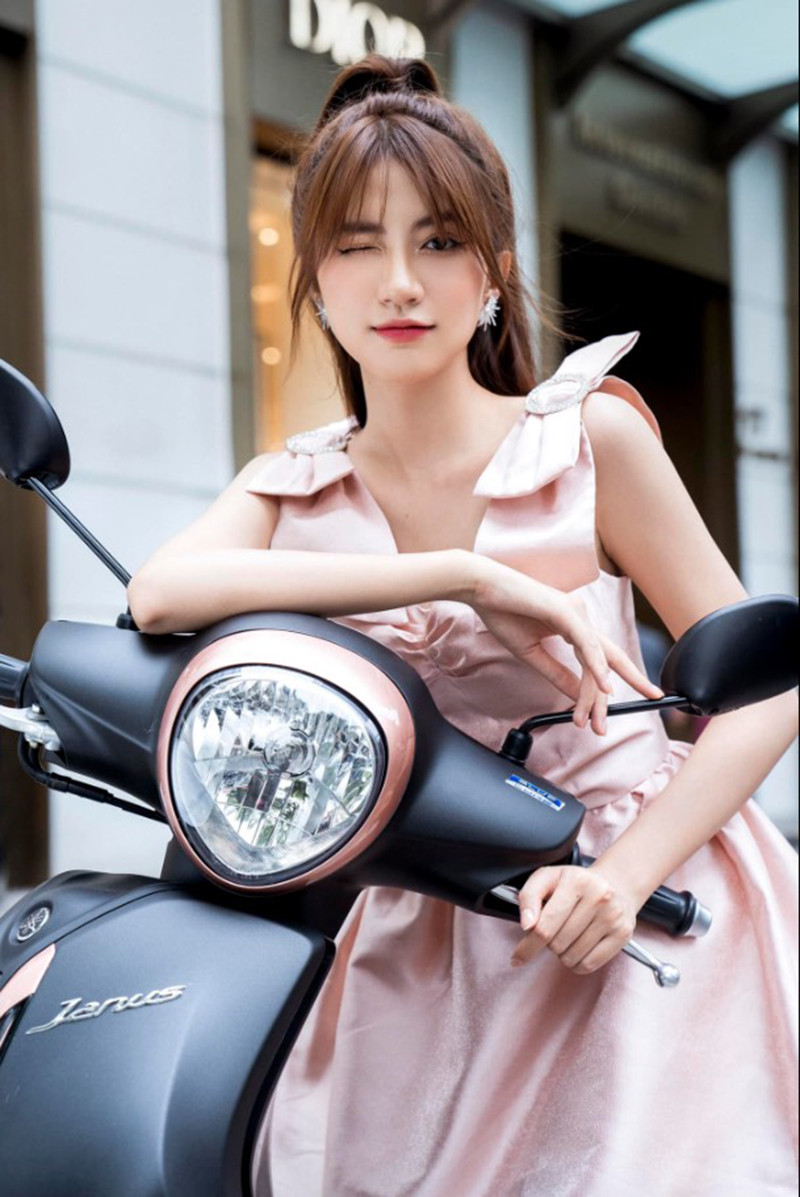 Khác biệt với hình ảnh nhí nhảnh, tinh nghịch trên phim, cô em gái út Vân Vân trong bộ phim "Thương ngày nắng về" lại có phong cách ngoài đời nữ tính và thời thượng. Cô nàng chọn cho dòng xe Yamaha Janus 2022 với sắc đen-hồng "chanh sả" là người bạn đồng hành của mình trong mỗi chuyến đi, khiến cô nàng thêm phần xinh đẹp và cá tính.