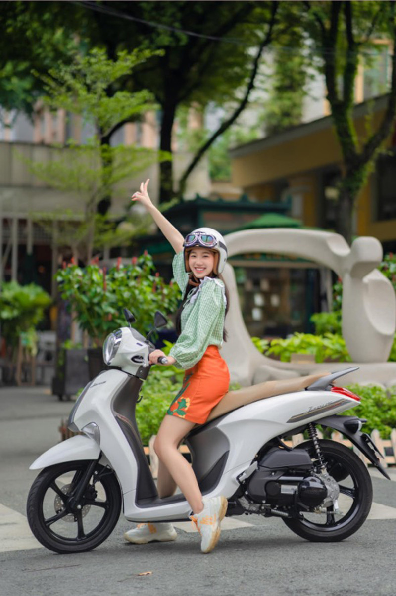 Tuy nhiên, cô nàng là người khá kỹ tính trong việc lựa chọn phụ kiện đi kèm. Các phụ kiện đều phải đáp ứng các tiêu chí “matchy” hoặc làm tôn lên bộ đồ. Chính vì vậy, không ngạc nhiên khi thấy Phí Phương Anh lựa chọn chiếc Yamaha Janus màu trắng đầy tinh tế. Sắc trắng vừa dễ phối đồ, vừa giữ được vẻ trẻ trung, thanh lịch, nhưng lại không kém phần sành điệu và cá tính.