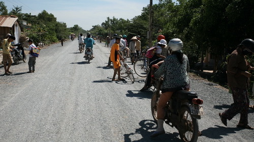 | Rất nhiều người dân ở xã Mỹ Quý Tây, huyện Đức Huệ (Long An) đổ ra đường nhặt đá vàng vì tưởng là vàng (Ảnh: Dân việt) |