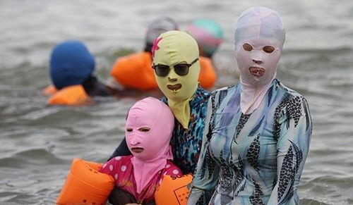 Facekini che kín toàn bộ đầu và mặt, chỉ để hở mắt, mũi, miệng, sau đó được biến tấu với các họa tiết như mặt nạ kinh kịch hay người nhện,... trở thành xu hướng thời trang khiến nhiều người ám ảnh.