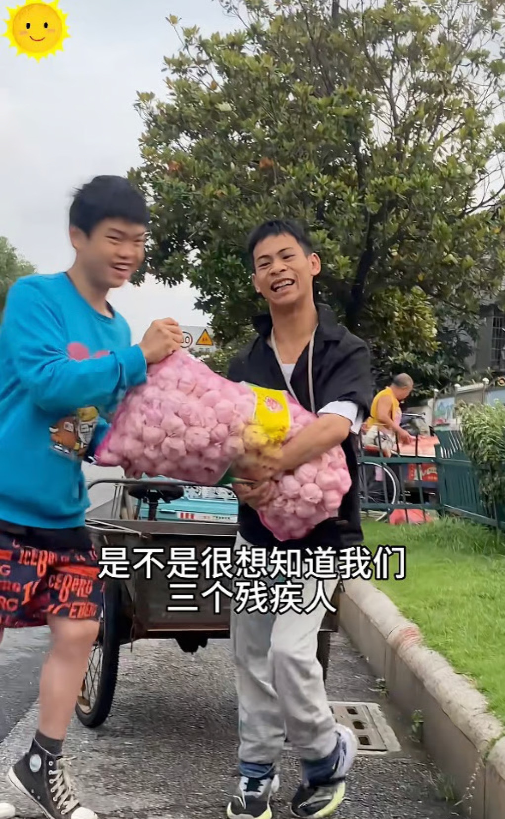 Sau khi chất khoảng 35kg tỏi, gừng lên xe lăn và đẩy ra chợ từ 3h30 sáng, 3 thanh niên sẽ cùng nhau ngồi bán đến trưa và kiếm được khoảng 45 NDT (164 nghìn đồng)/ngày. Chiều tối, họ bán nước ở vỉa hè, thường đến 22h hoặc muộn hơn.