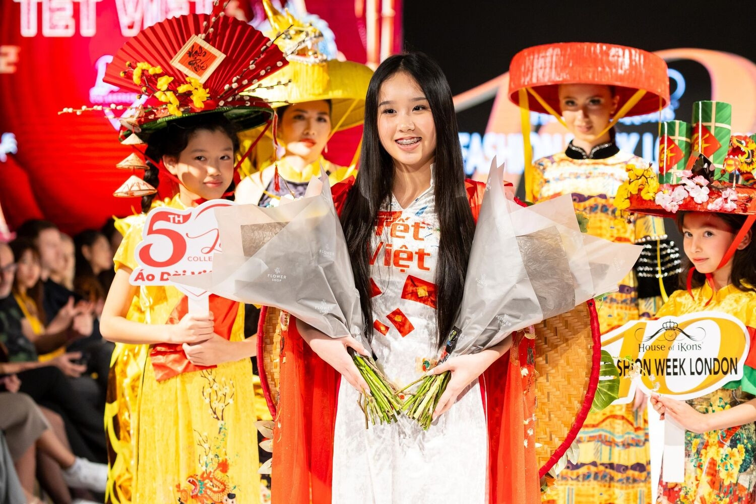 Văn hoá Tết Việt xuất hiện tại Tuần lễ thời trang LondonCác mẫu áo dài Việt, hoa mai, hoa đào, cây quất, biểu tượng rồng vàng năm Giáp Thìn cùng với tục lệ tặng bao lì xì may mắn đã xuất hiện tại sàn diễn thời trang House of iKons Fashion Week London.