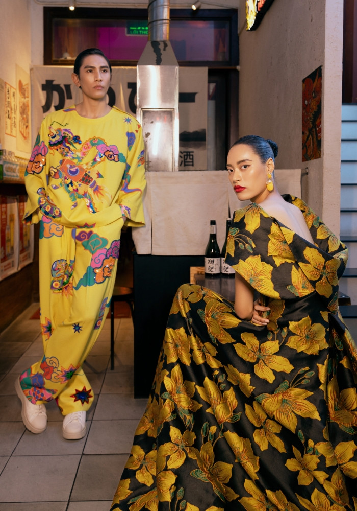 Cảm hứng về cuộc sống tươi đẹp rực rỡ sắc màu là thông điệp được hai nhà thiết kế Vũ Ngọc Tú và Đinh Trường Tùng truyền tải trong bộ hình khai xuân.