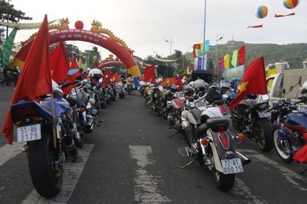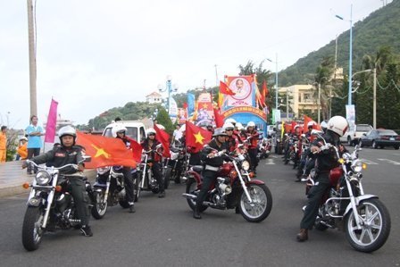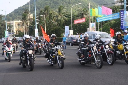 Dàn xe phân khối lớn dẫn đầu đoàn diễu hành chào mừng sự kiện quan trọng diễn ra lần đầu tại thành phố biển. Hàng ngàn người tham dự đại diện cho các khối cơ quan, ban ngành trong sự kiện này.