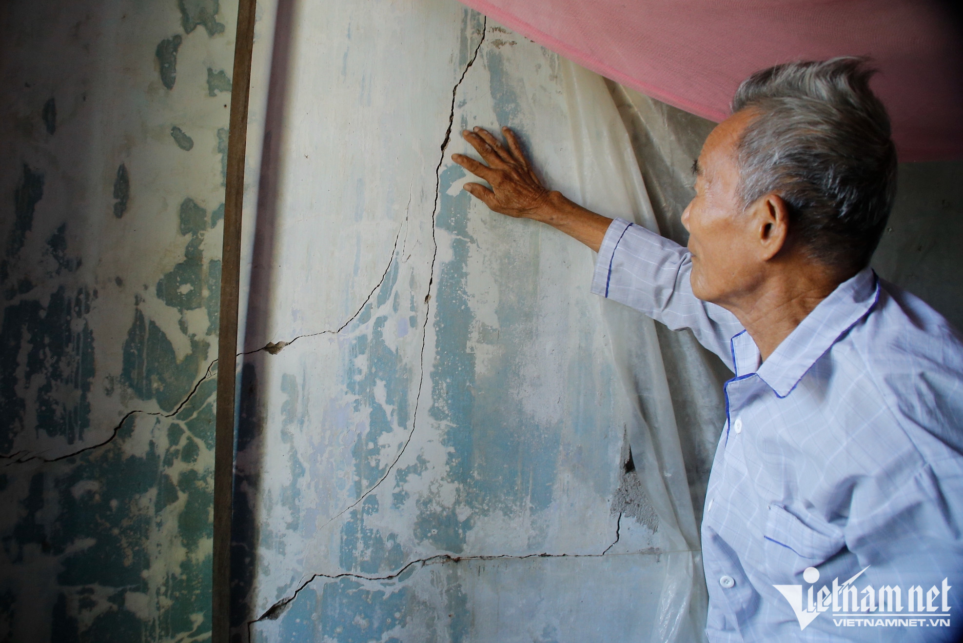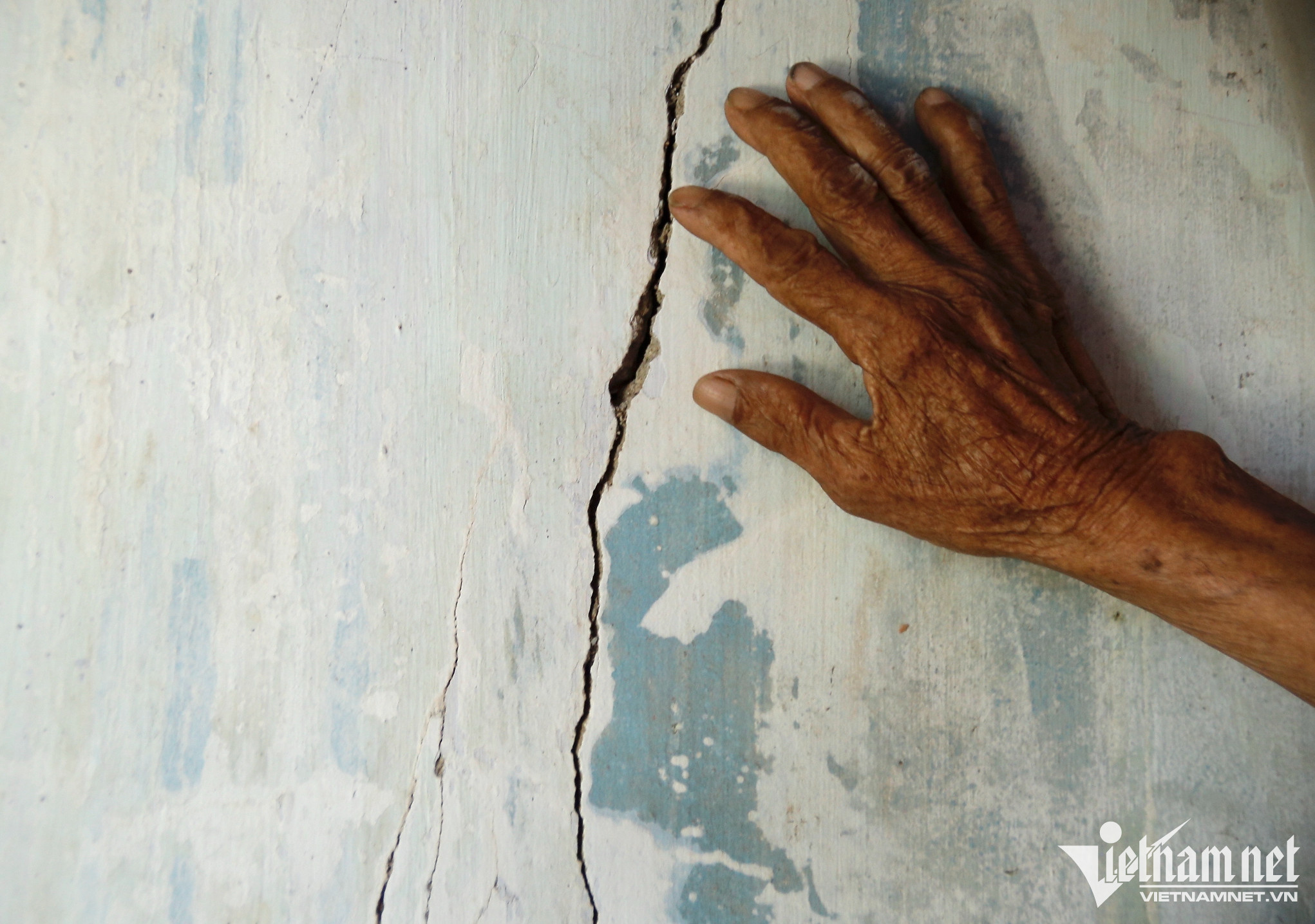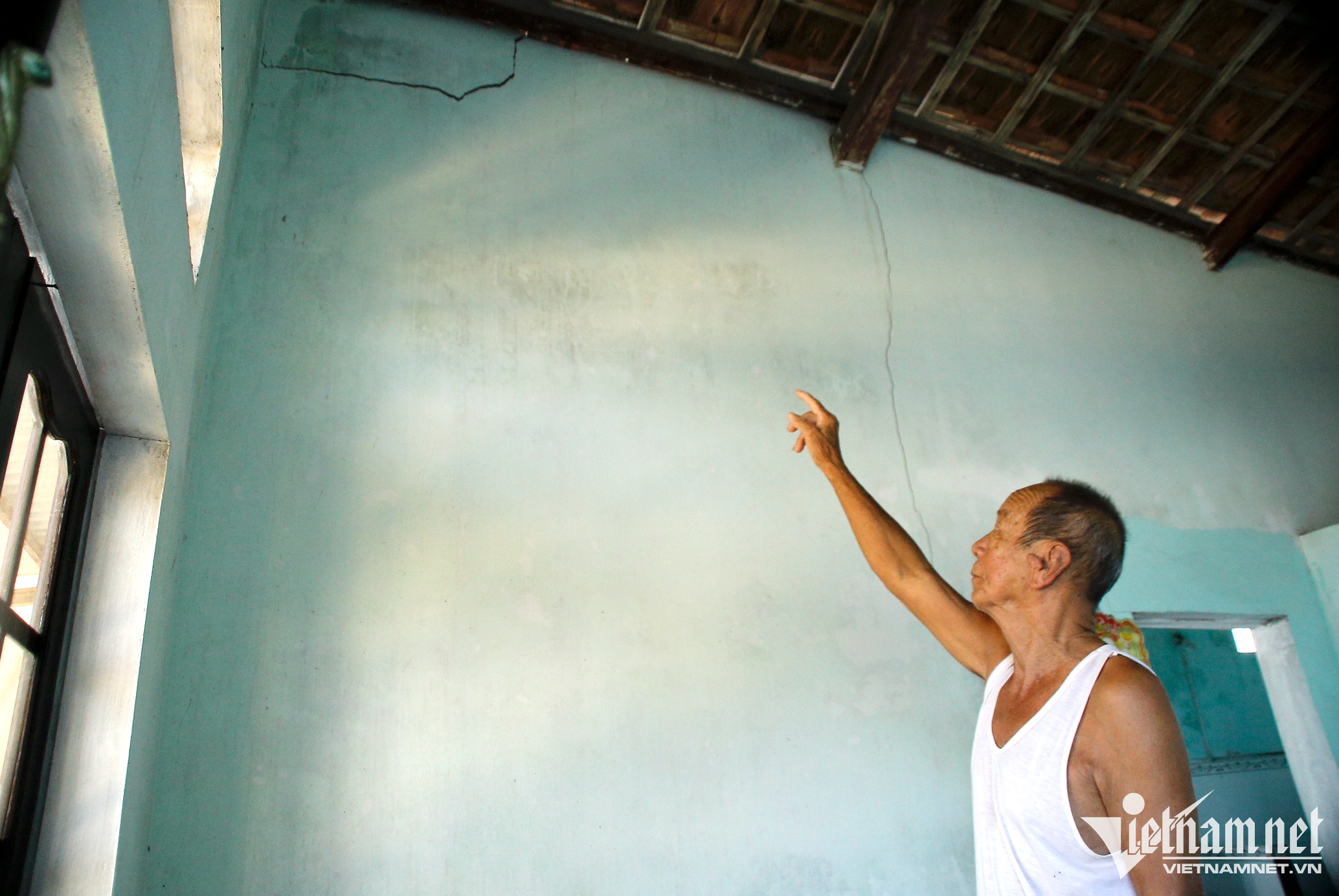 Ông Tri lo lắng khi tường nhà của gia đình bị nứt nẻ, rạn nứt như bây giờ, nước mưa thấm thẳng vào nhà và sợ rằng ngôi nhà sẽ sập bất cứ lúc nào.