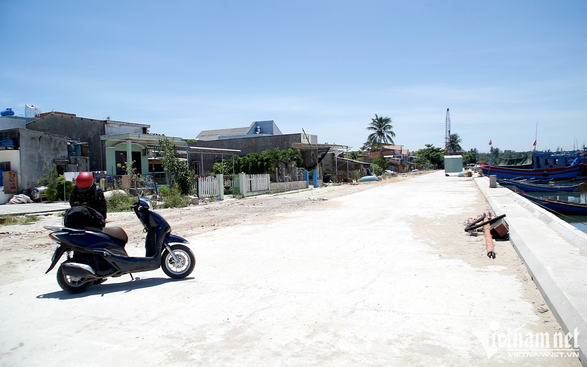 Theo chủ đầu tư, dự án có 13 phân đoạn với chiều dài 457m, hiện đã hoàn thành được 9 phân đoạn, 4 phân đoạn còn lại dài khoảng 100m đang vướng mặt bằng hai triền đà đóng tàu của người dân chưa triển khai được...