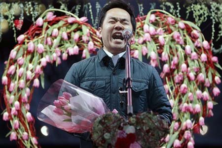 Một người đàn ông bày tỏ tình yêu với vợ khi đứng trên sân khấu. (Ảnh: EPA) |