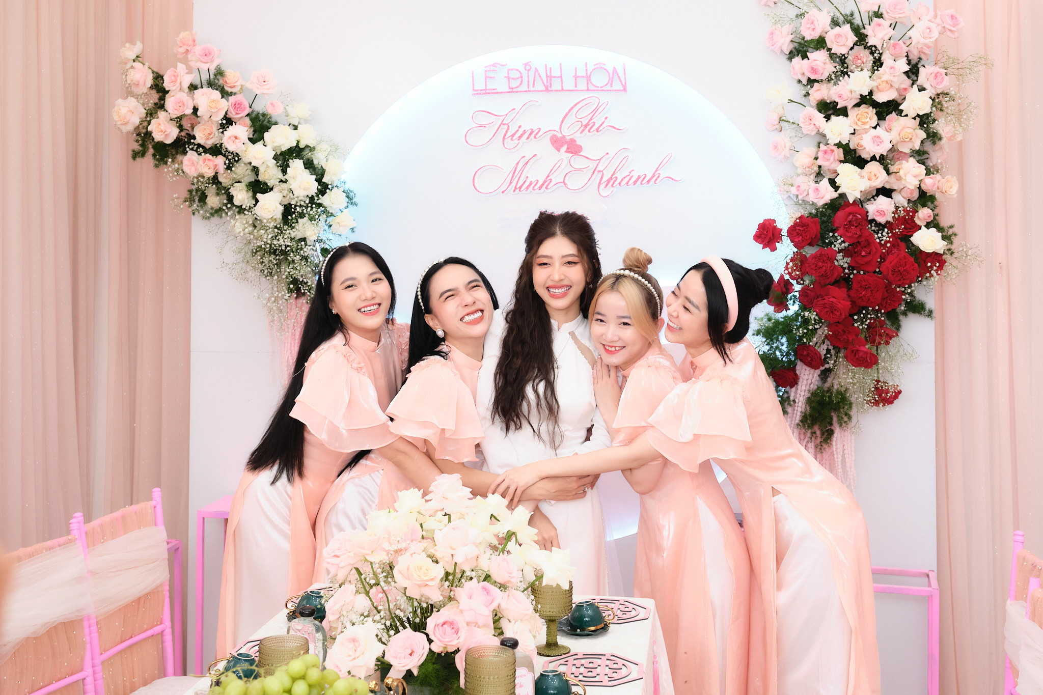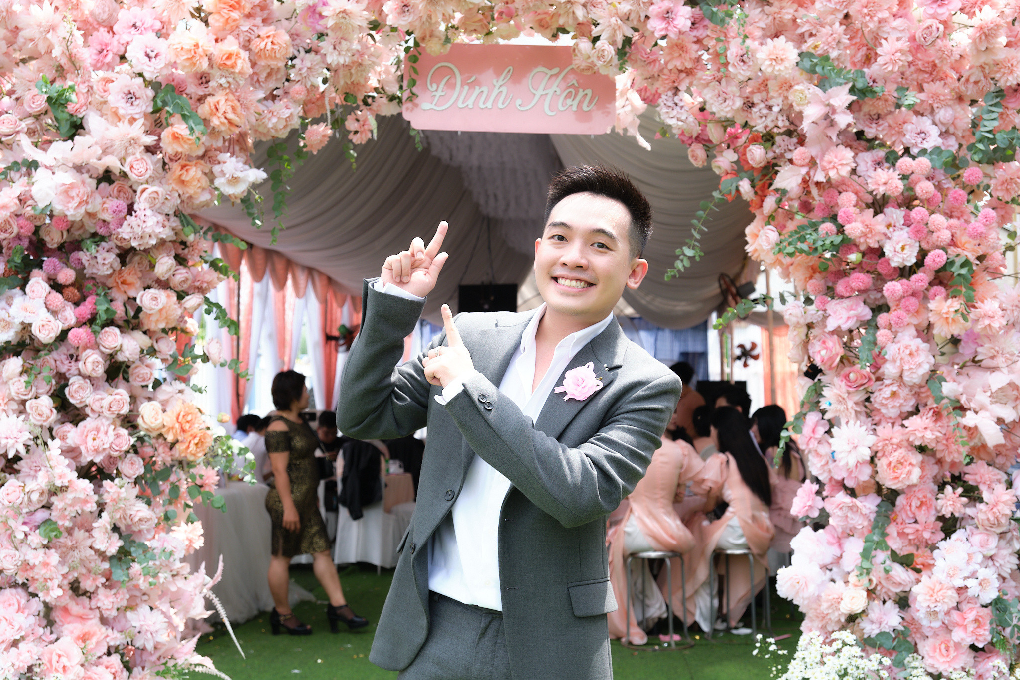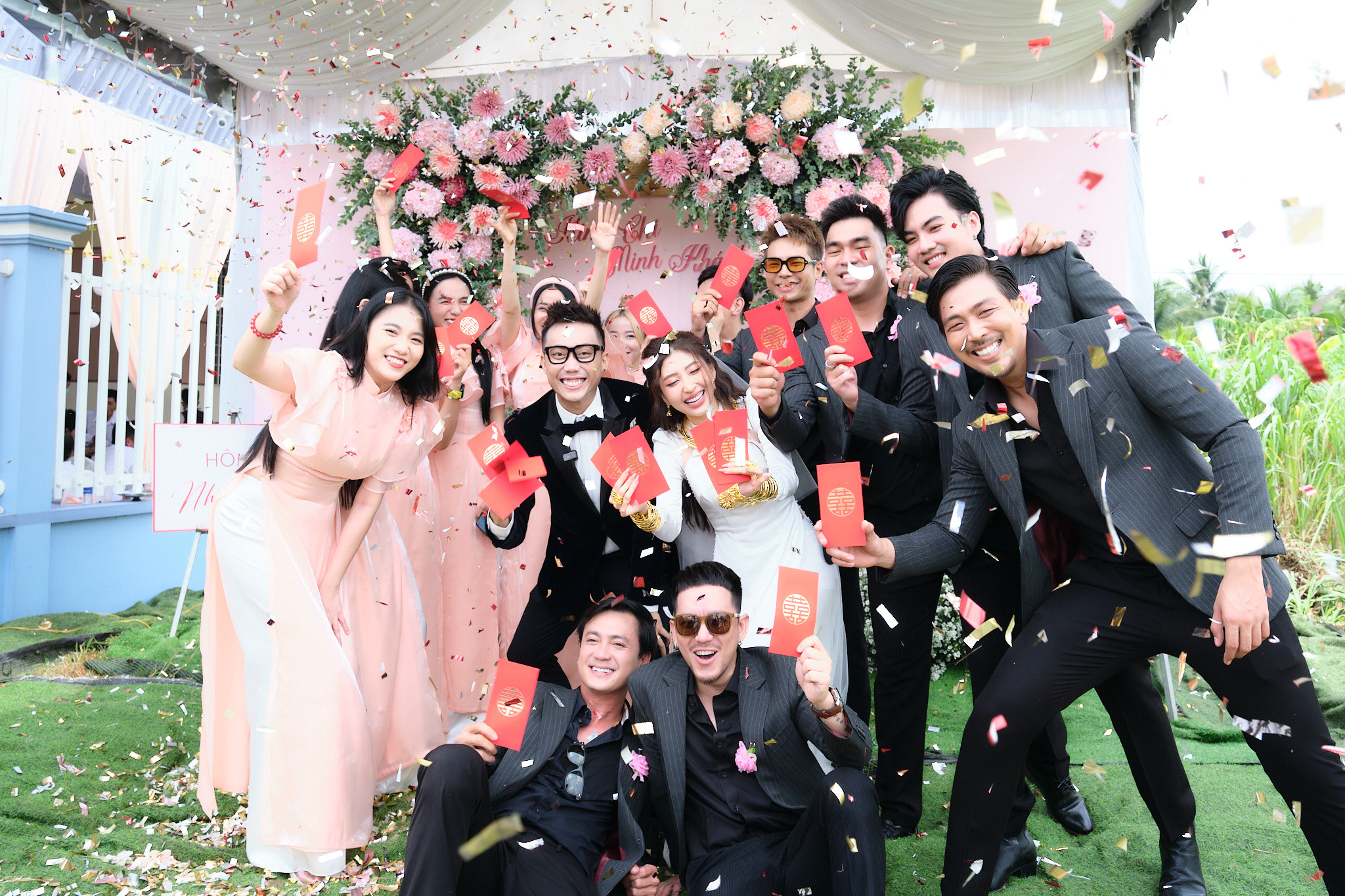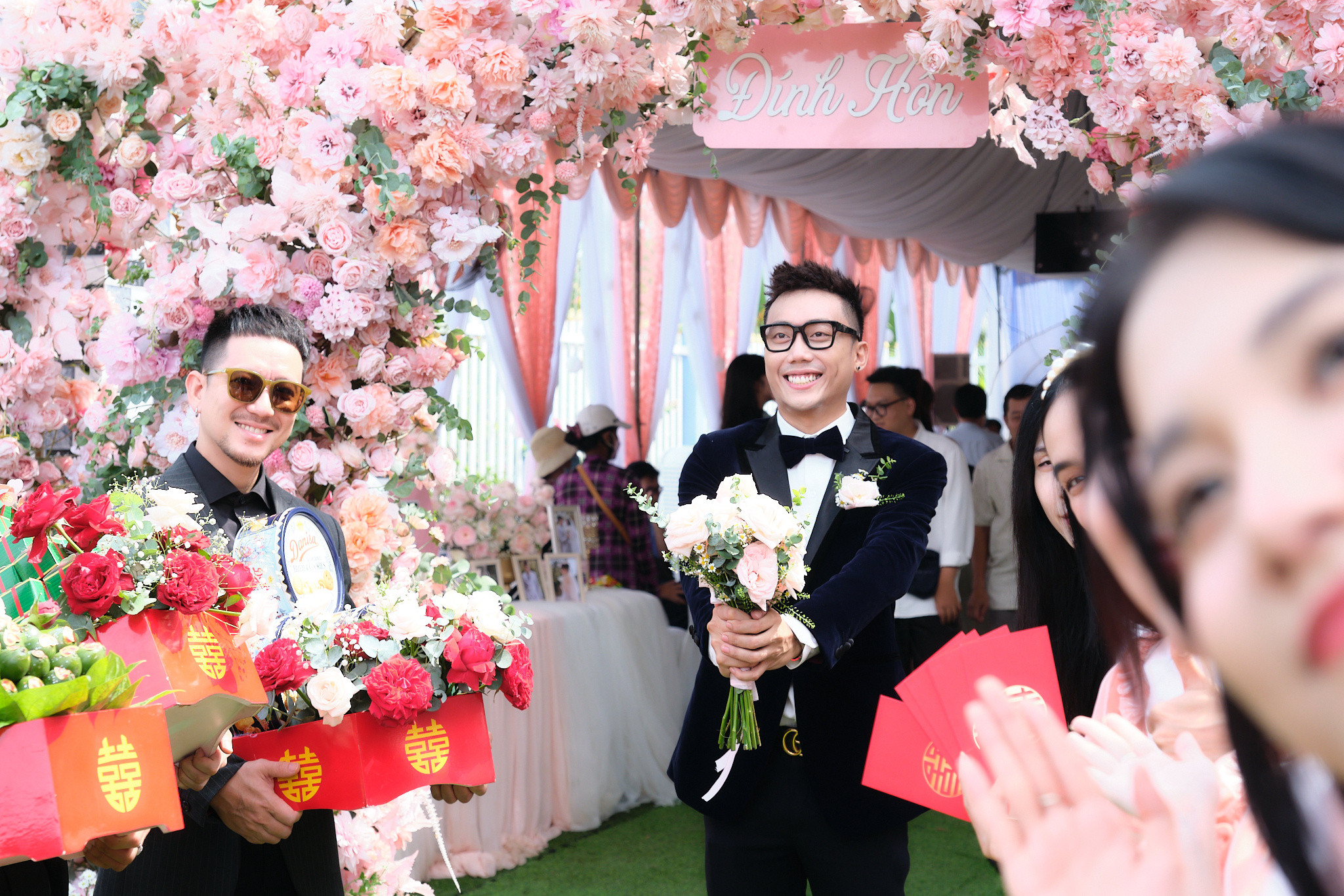 Đám hỏi của diễn viên Gino Tống và Nguyễn Kim Chi tổ chức ra tại Mỏ Cày Nam, Bến Tre. Diễn viên Anh Dũng có mặt từ sớm với phong cách thời trang quen thuộc. Anh từng cùng Gino Tống và Trương Thị May tham gia phim điện ảnh 'Giấc mơ thứ 7'.Dàn diễn viên gồm Phạm Huỳnh Hữu Tài, Quang Sơn, Thành Khôn... xuống Bến Tre làm phù rể cho Gino Tống.Vlogger Phở Đặc Biệt (tên thật Tô Bửu Phát, sinh năm 1991) có tình bạn nhiều năm với Gino Tống. Họ thường tham gia hỗ trợ các dự án của nhau.Cô dâu Nguyễn Kim Chi và dàn phù dâu gồm Lục Anh, Mỹ Nhân, Yến Nhi, Kim Ngọc, Emma đều từng xuất hiện trong series phim chiếu mạng chủ đề học đường dài 9 phần 'Phim cấp 3'.Gino Tống và Nguyễn Kim Chi gặp rồi yêu nhau từ phim trường. Sau 7 năm bên nhau nhiều thăng trầm, họ quyết định làm lễ ăn hỏi, dự tính tổ chức đám cưới vào 3 năm sau khi sinh con đầu lòng. Hai người muốn có con nhỏ chứng kiến khoảnh khắc ba mẹ bước vào lễ đường.Cô dâu Nguyễn Kim Chi được gia đình đôi bên trao hơn 20 cây vàng. Cô và gia đình chồng thân thiết nhiều năm, được mẹ chồng yêu thương, chiều chuộng như con ruột.Nguyễn Kim Chi tin tưởng chồng tuyệt đối sau khi trải qua nhiều sóng gió cùng nhau còn Gino Tống "hạnh phúc khó tả bằng lời" trong ngày trọng đại.Gino Tống sinh năm 1993 tại TP.HCM, tốt nghiệp ngành Quản trị kinh doanh. Anh là đạo diễn, diễn viên của series phim chiếu mạng chủ đề học đường dài 9 phần 'Phim cấp 3'; đã đóng các phim 'Mỹ nhân thần sách', 'Giấc mơ thứ 7', 'Nailbiz đại chiến'... Nguyễn Kim Chi sinh năm 1994 tại Bến Tre. Ngoài vai chính trong series 'Phim cấp 3', cô từng đóng MV của Vương Anh Tú, Trịnh Đình Quang... Sau giai đoạn bùng phát dịch Covid-19, cặp diễn viên tập trung xây dựng sự nghiệp kinh doanh. Sau lễ ăn hỏi, Gino Tống sẽ trở lại với dự án âm nhạc - đam mê thứ hai của anh sau phim ảnh.
